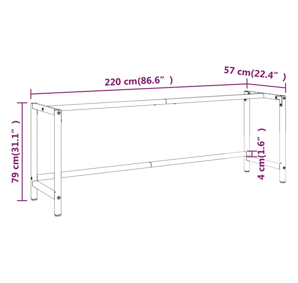 This sturdy metal work bench frame can be used in multiple occasions and meet your different needs. With its powder coated legs, the table frame is durable and can withstand heavy use. The top and bottom sides are designed with a reinforced bar for added support and strength. Pre-drilled holes at the top allow you to easily attach any table top as needed.