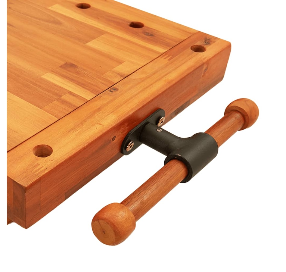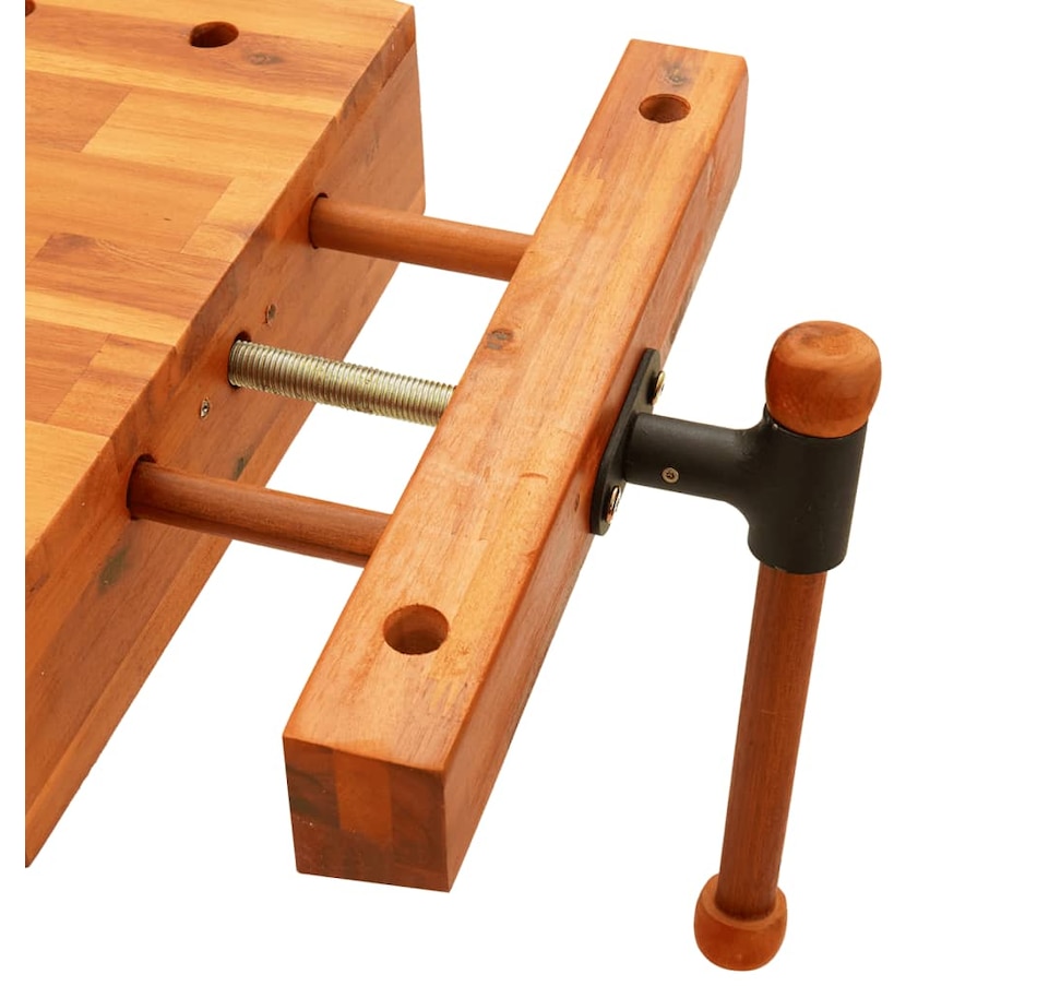 This wooden workbench top is a perfect addition to your workstation and is ideal for giving you a stable surface to work on. Solid Acacia Wood: Solid acacia wood is a beautiful natural material. Acacia wood is a tropical hardwood, which is dense, robust and durable.Stable work surface: thanks to the wide and stable work surface, you can work efficiently even on large workpieces.Flexible use: thanks to its small worktop size makes it ideal for flexible use in different work locations by clamping or screwing it to your workshop table. Note: Colors may vary from piece to piece, making each piece unique and slightly different from each other. Delivery is random, which guarantees the exclusivity and individuality of your product. Clamps and screws are not included. The screw holes are not pre-drilled.