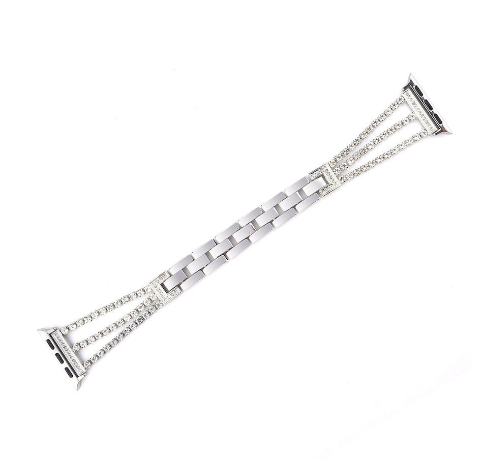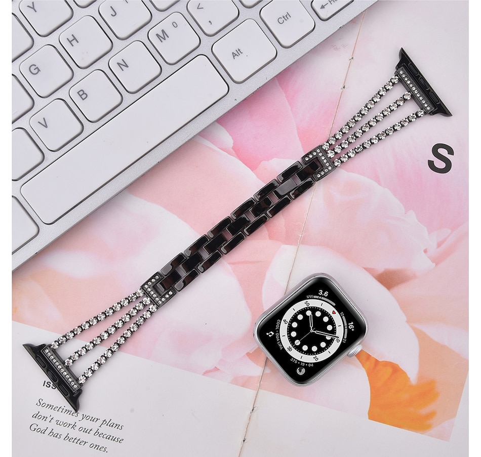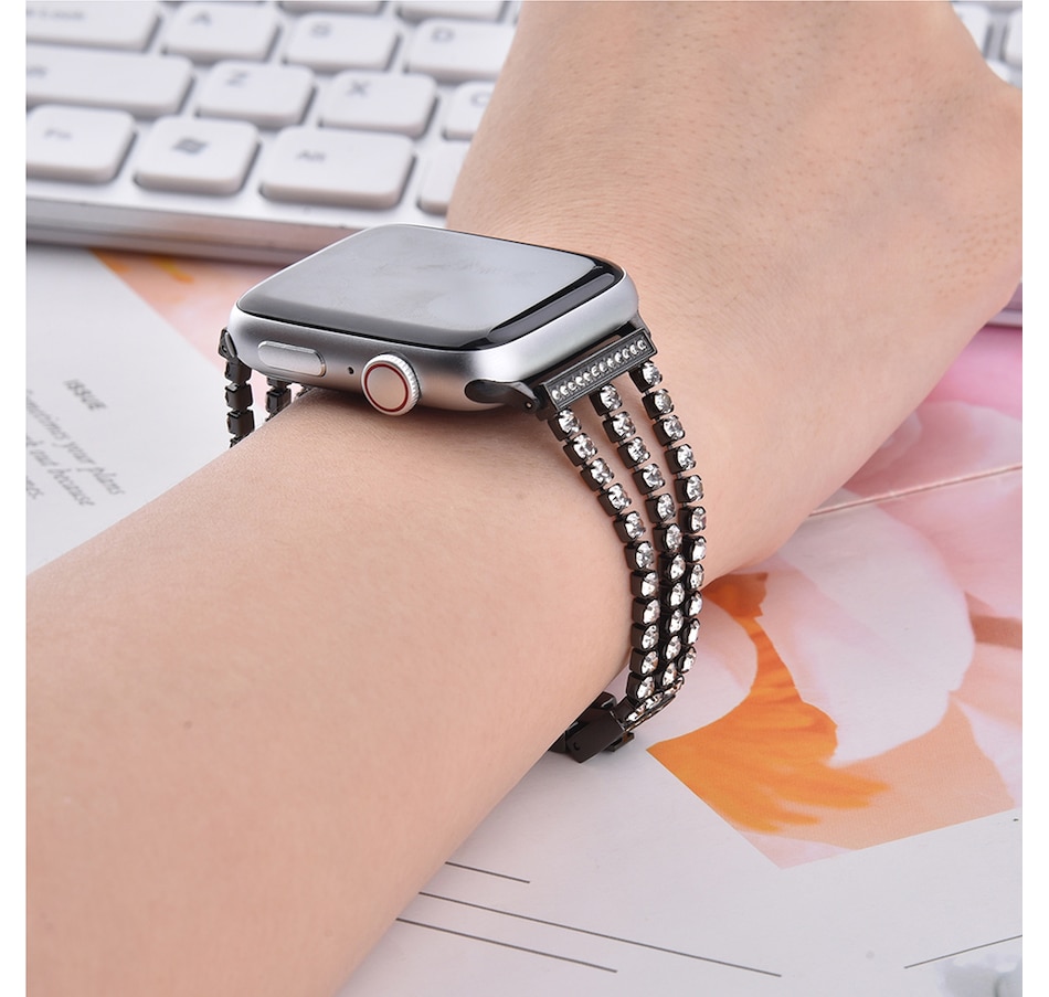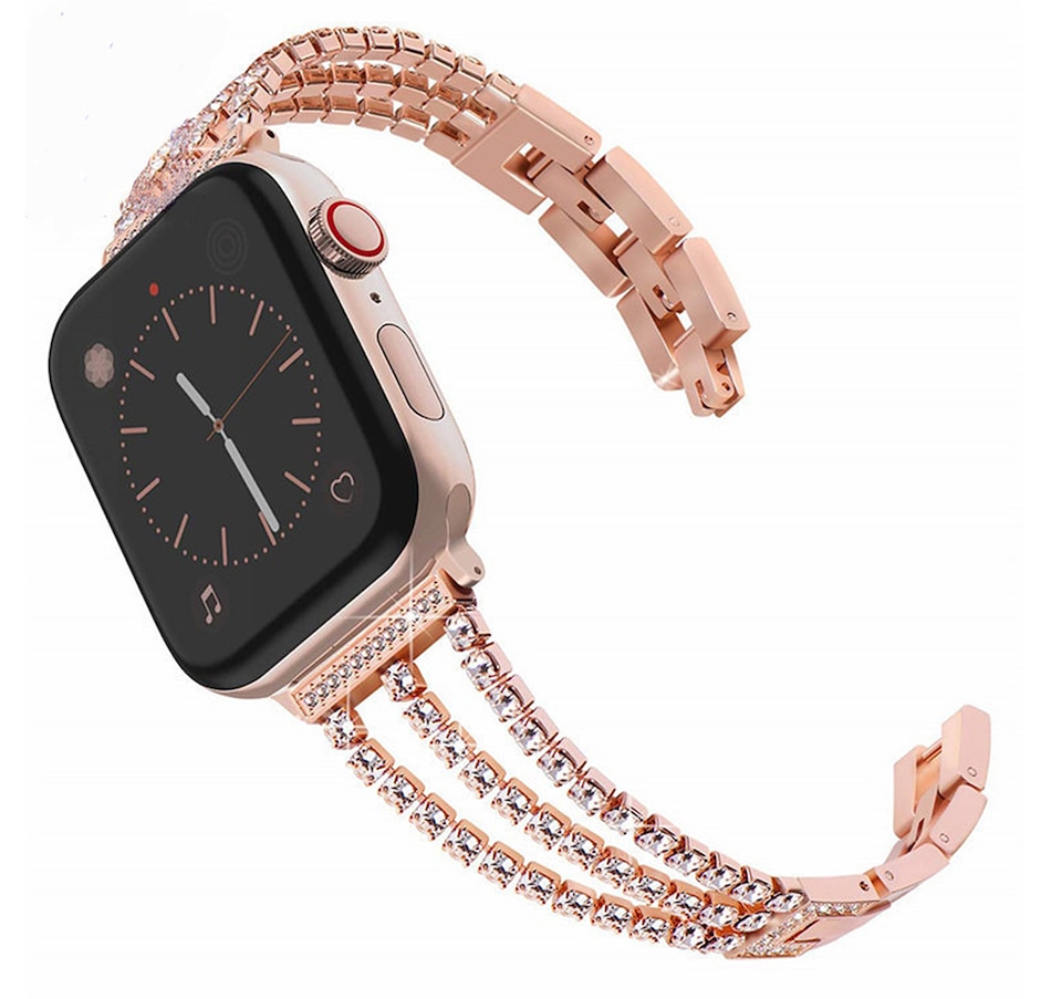 This fashionable and sturdy metal watch band for the Apple Watch is made of high-quality metal and shiny rhinestones, and has no sharp edges for extra comfort. It's also suitable for daily wear.