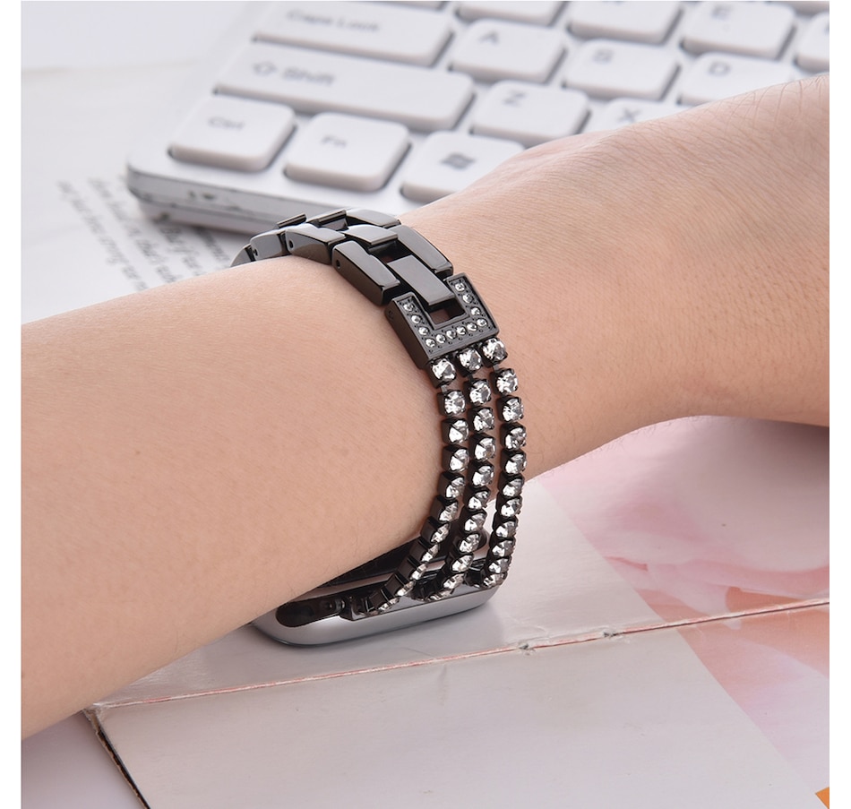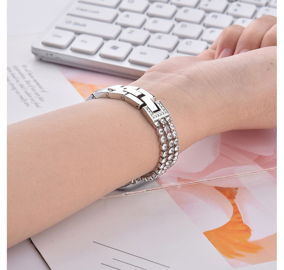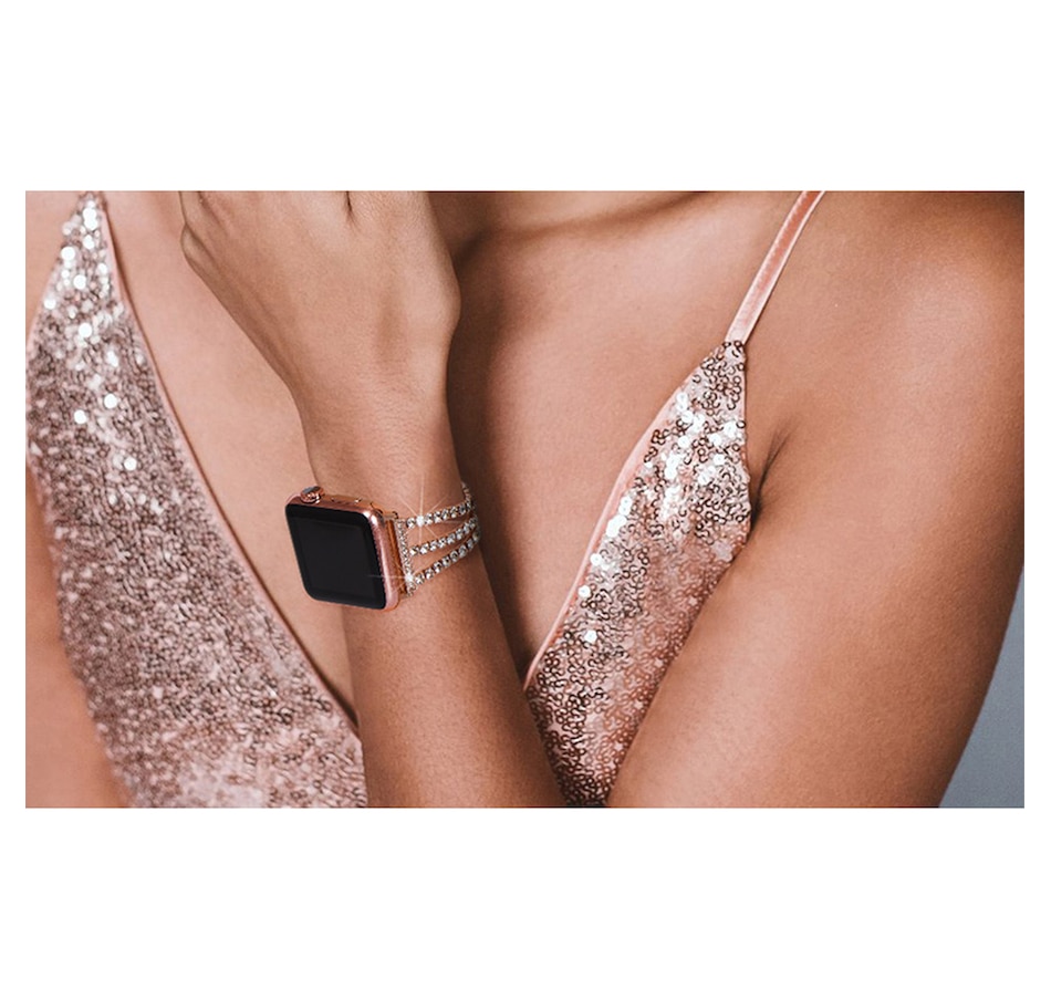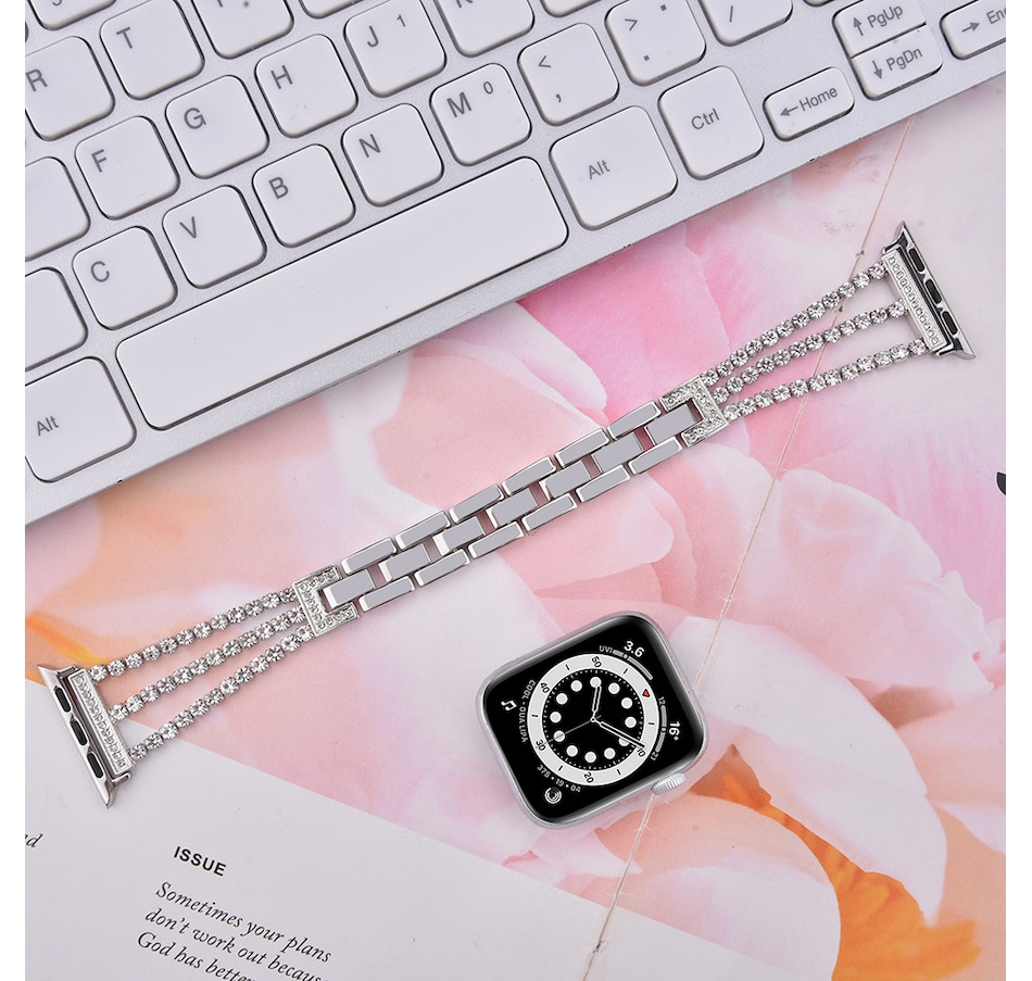 This fashionable and sturdy metal watch band for the Apple Watch is made of high-quality metal and shiny rhinestones, and has no sharp edges for extra comfort. It's also suitable for daily wear.