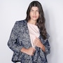 Finish all your looks in versatile, eye-catching style with this metallic denim jacquard jacket from Marla Wynne.