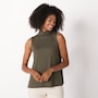 Chic and sleek, you're going to love the addition of this sleeveless turtleneck to your wardrobe.