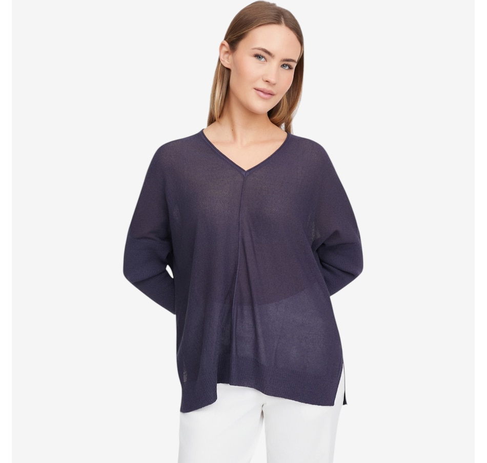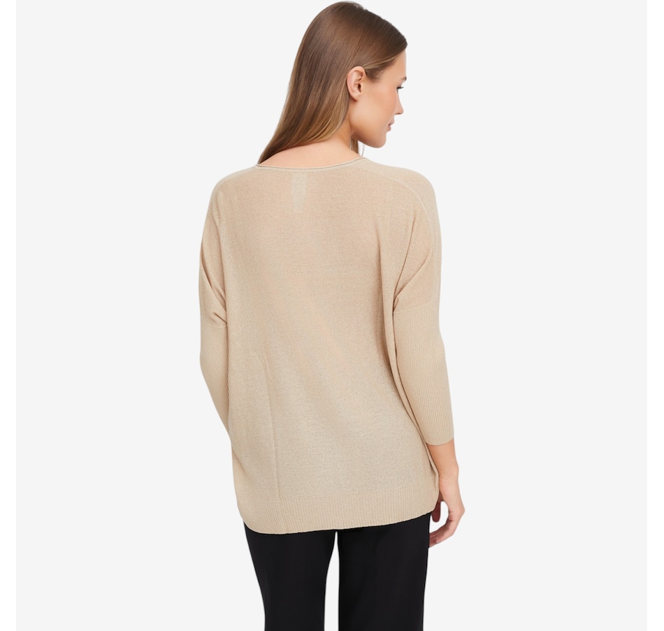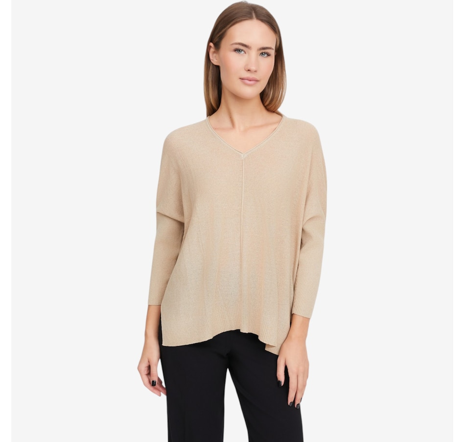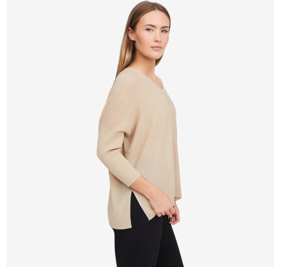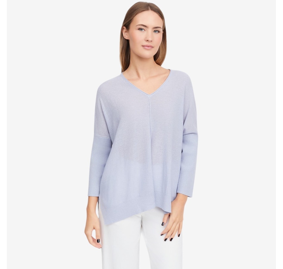 Cozy up in effortless sophistication with the baby boucle sweater from Marla Wynne, crafted from a soft sweater knit that offers plush comfort with just the right amount of stretch. The refined V‑neckline gives this everyday essential a modern, elevated feel, while the loose fit makes it ideal for both easy lounging and polished layering. Designed to keep its shape wear after wear, the durable knit blend resists pilling and maintains its luxurious look. Finished with a clean hem and self 2x2 rib detailing, plus breezy 3/4 length sleeves and a simple pull‑over design, this is the cozy‑chic selection you’re sure to love.