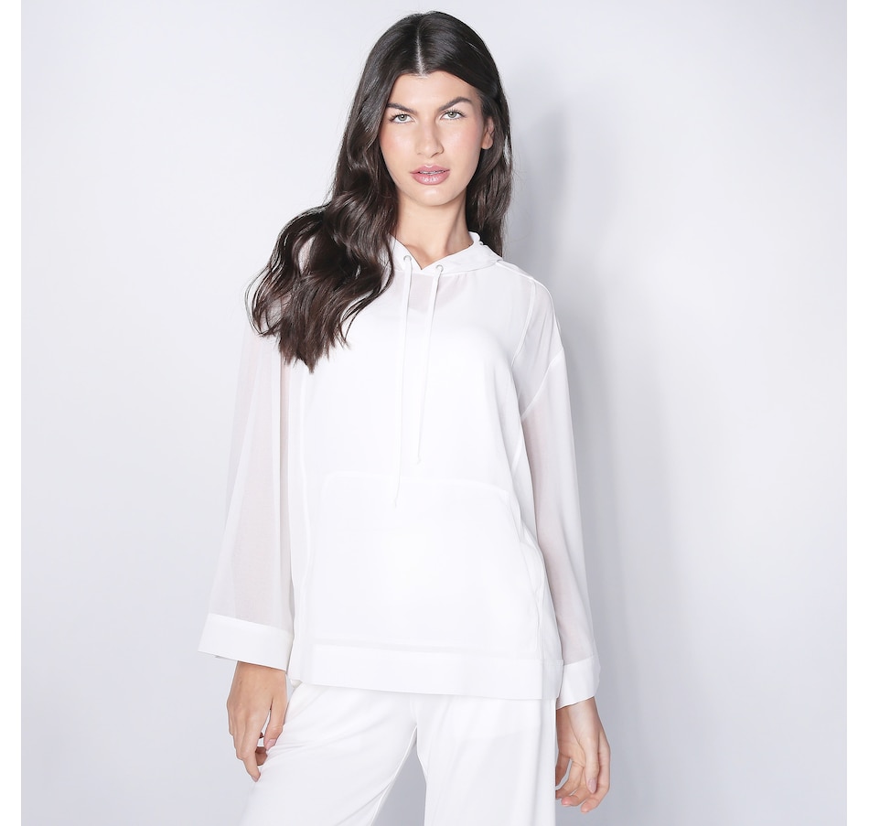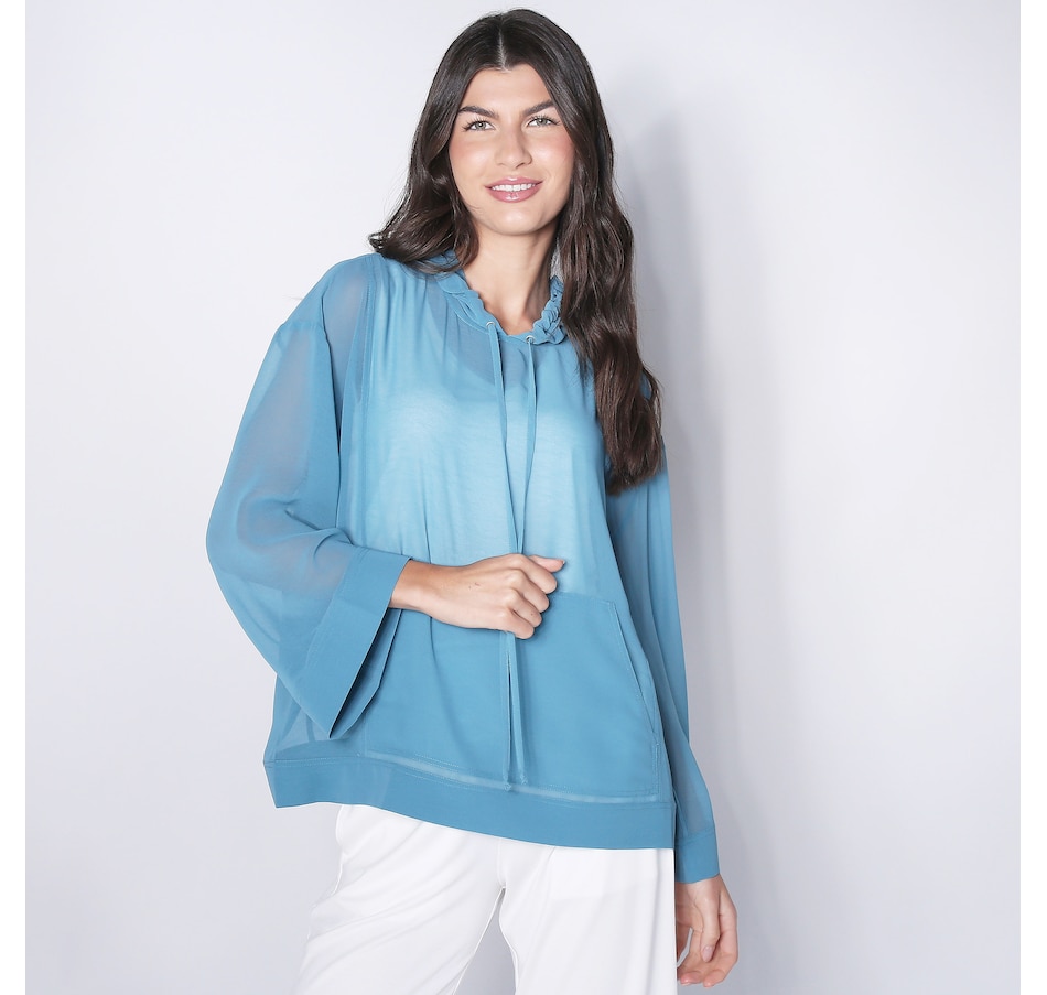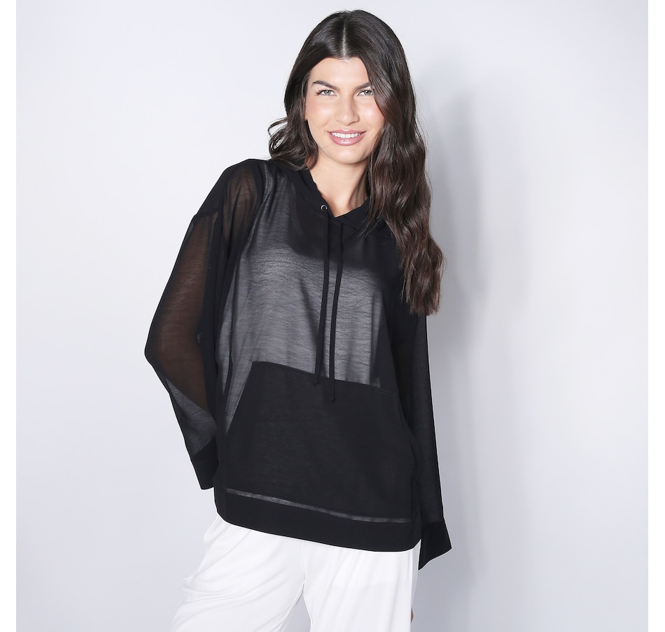 Finish all your looks in versatile, comfortable style with this beautiful chiffon hoodie from Marla Wynne.