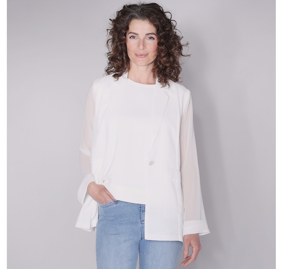 Centre all your ensembles in exceptional, easy style with this beautiful chiffon jacket from Marla Wynne.
