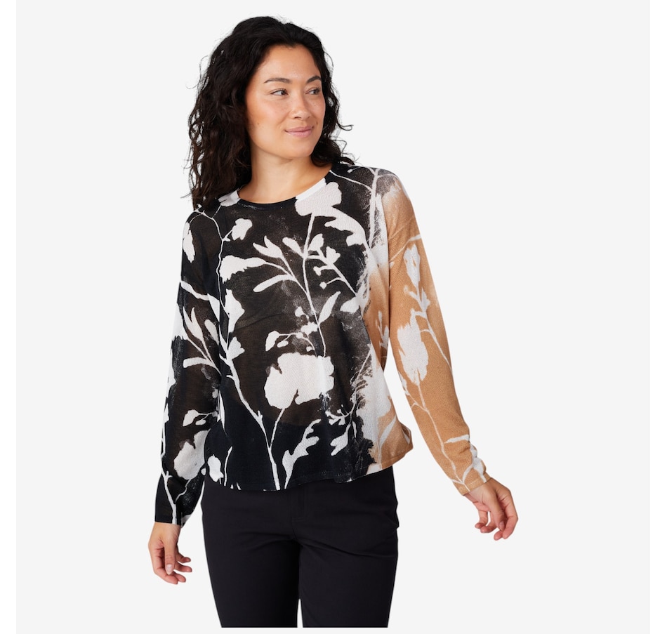 You'll centre your fall look in vibrant style when you wear this fall floral printed sweater from Marla Wynne.