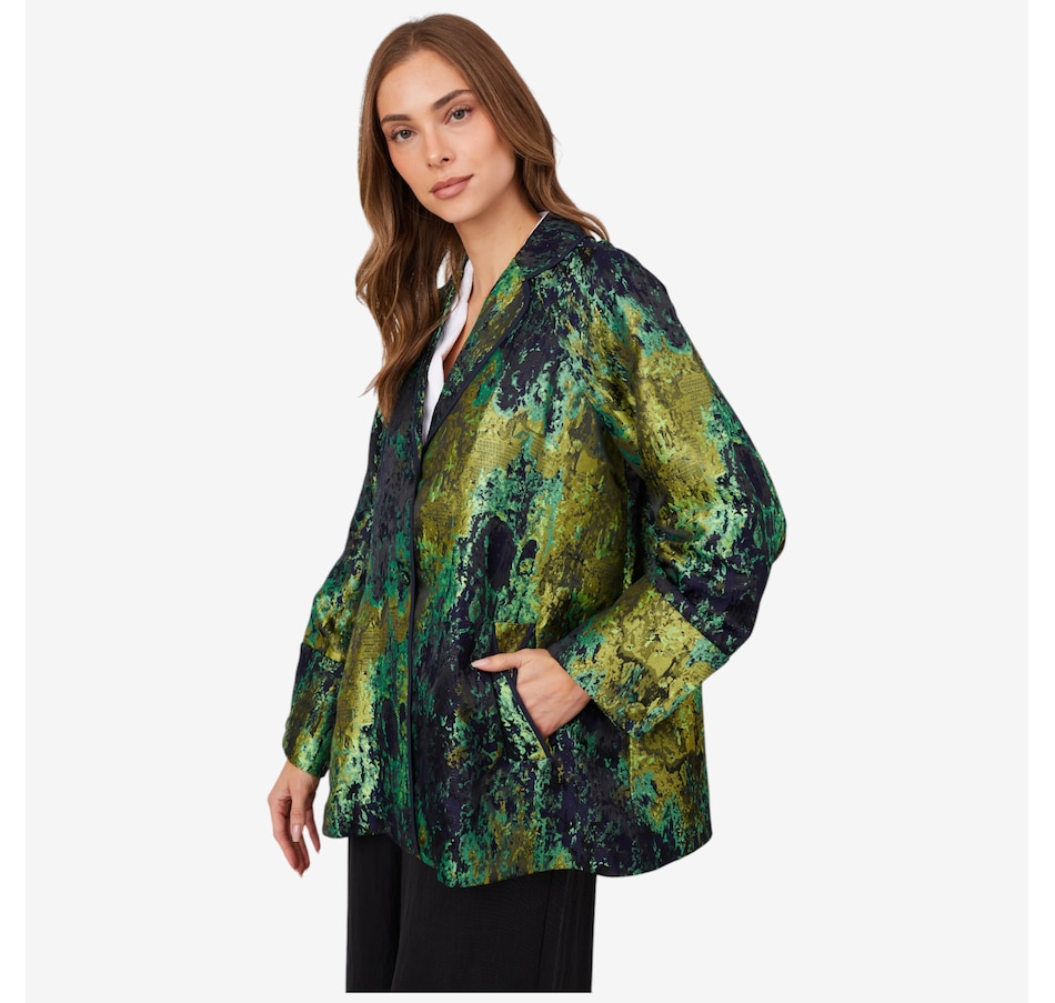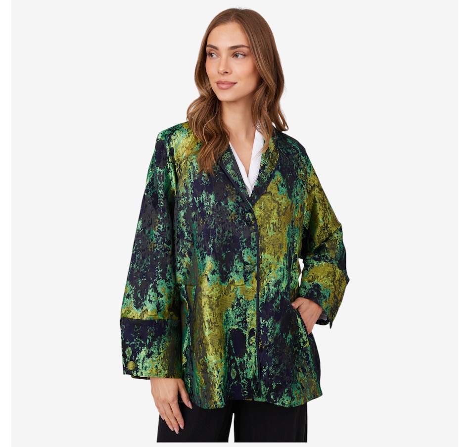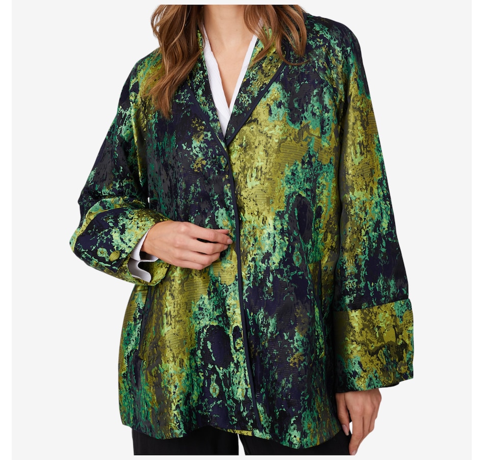 Available in a selection of colour combinations, you'll centre every look in incredible style wearing this fall jacquard topper from Marla Wynne.