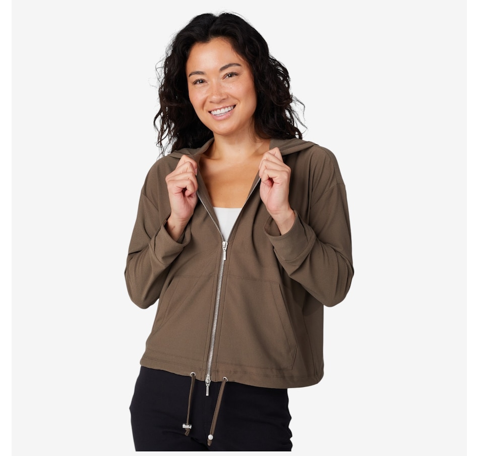 You'll centre your fall look in easy style when you wear this luxe crepe hoodie from Marla Wynne.