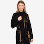 • Loose fit, long sleeves, belted