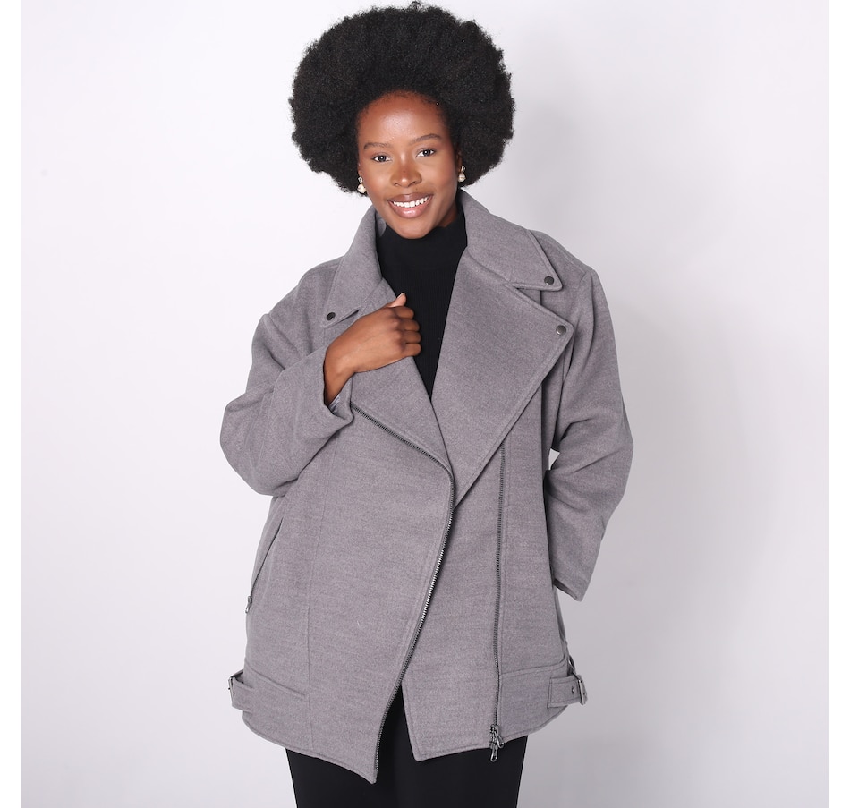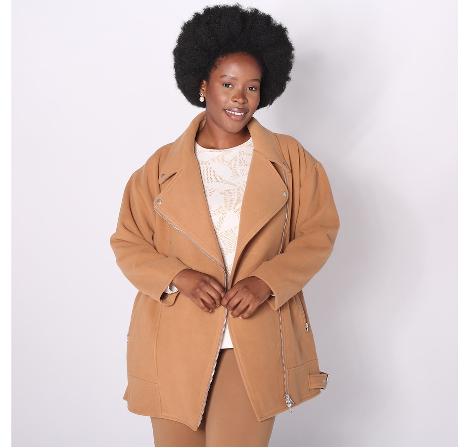 You'll finish your fall look in cool style with this melton refined moto jacket from Wynne Style.
