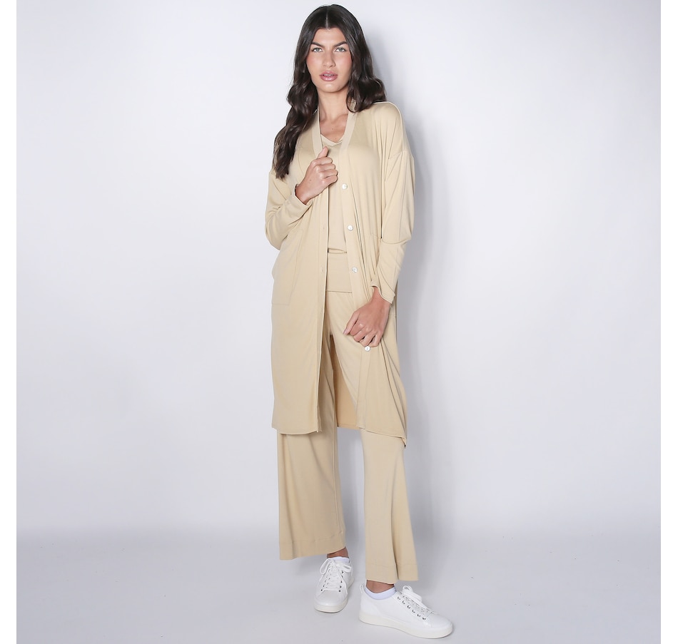 Finish all your looks in classic, versatile style with this micro rib duster from Marla Wynne.