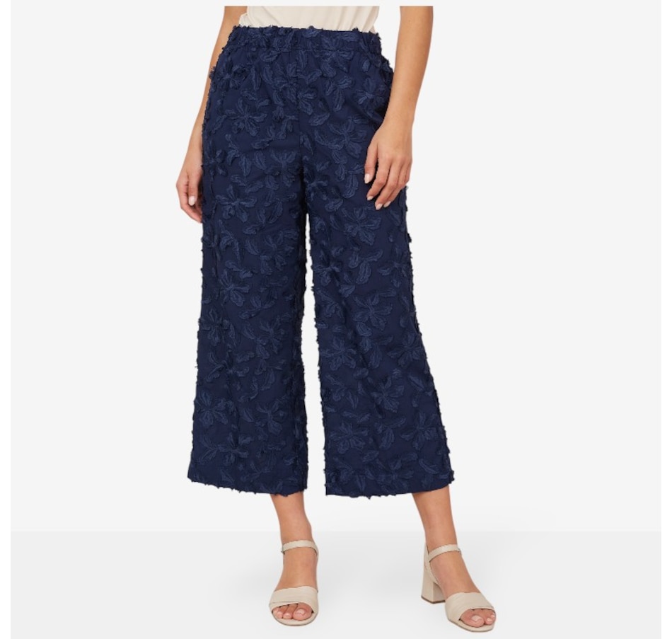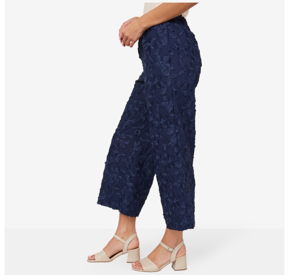 Available in a beautiful selection of colours, you'll create a look that's breezy with a touch of sophistication wearing this beautiful novelty clip jacquard pant from Marla Wynne.