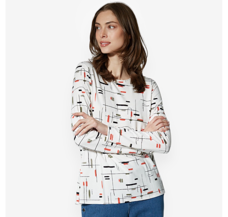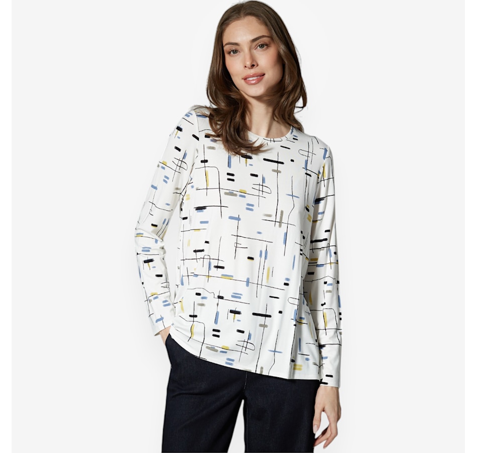 Centre all your ensembles in classic, casual style wearing this printed viscose span butterfly tee from Marla Wynne.