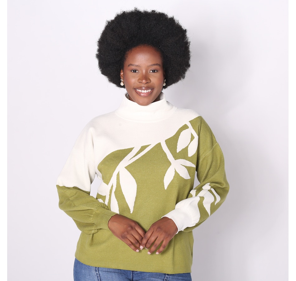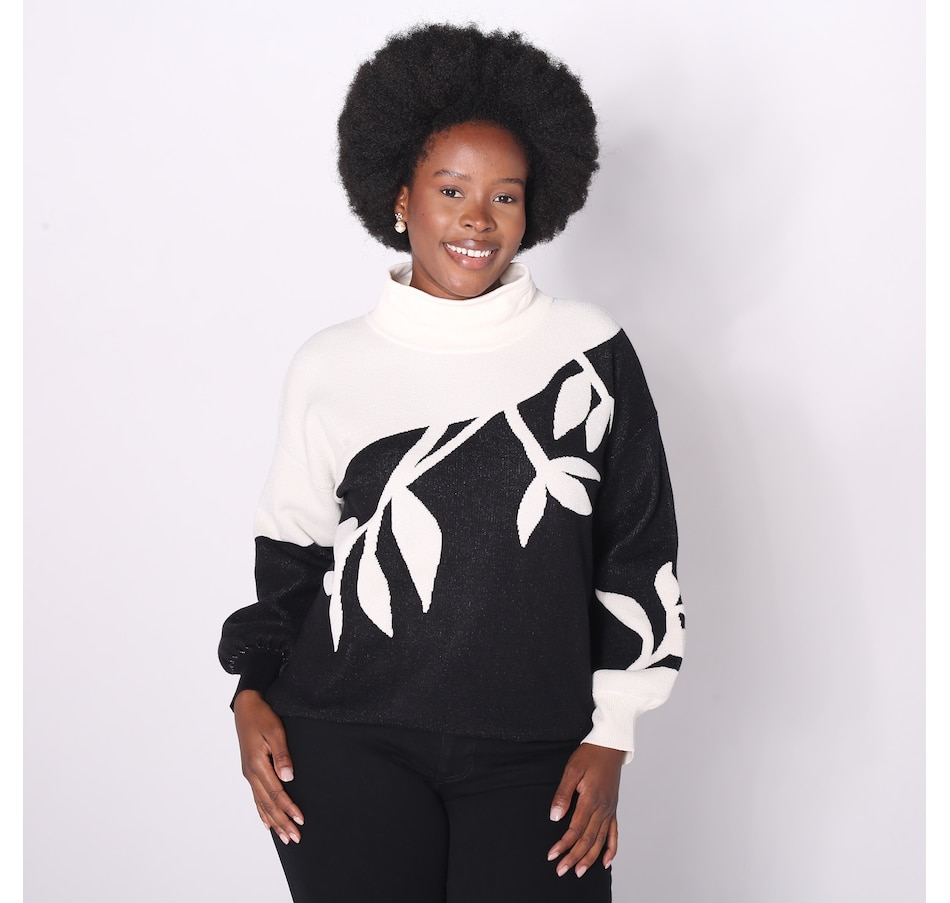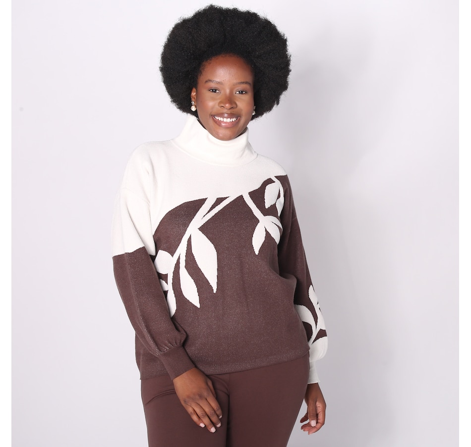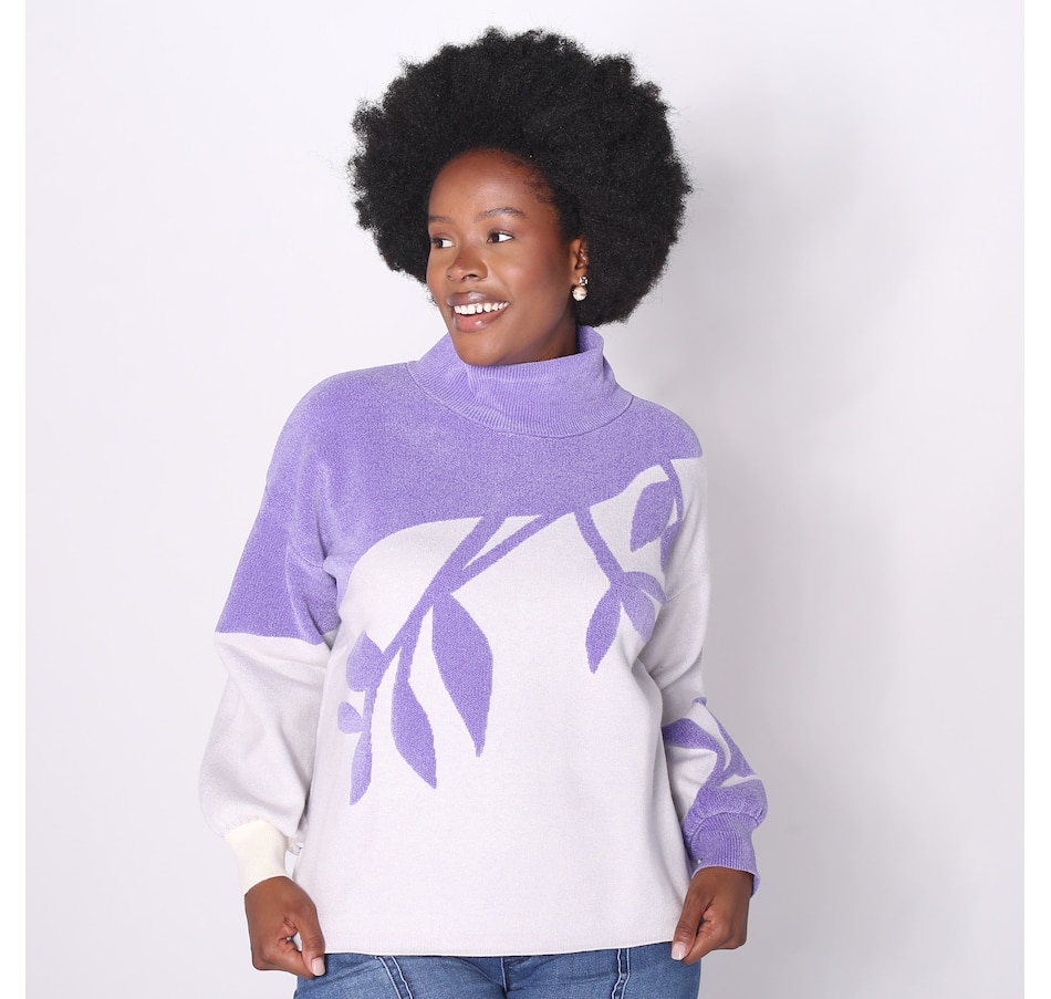 Available in a selection of great colours, you'll finish your fall look in beautiful style with this jacquard sweater from Wynne Style.