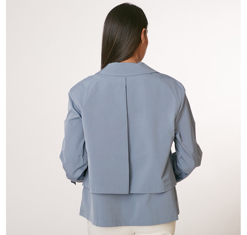 • Sleeve tab with functional button, centre back pleat, dropped shoulder, loose fit