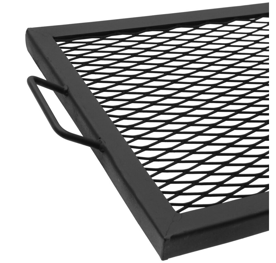 This steel mesh fire pit campfire cooking grill grate can be used for meals, BBQs, and so much more. It is great for cooking right over the fire pit at any family gathering, friendly get-together, parties, events, or simple, enjoyable dinners over the fire for that delicious smoky bite. This fire pit grill will allow cooking over the flames to be easy. The handles make it even more portable for taking it camping, to the beach, the park, out on the patio, or even to a friend's house. The heavy-duty metal construction ensures that this product is engineered to last. The durable steel material is weather-resistant, and the entire thing is finished with a coat of heat-resistant paint to ensure longevity and quality. This cooking grill can hold up to 25 lbs of food at a time. Grab the serving tray and get cooking for your smoky fresh meats or fish, right off the fire!