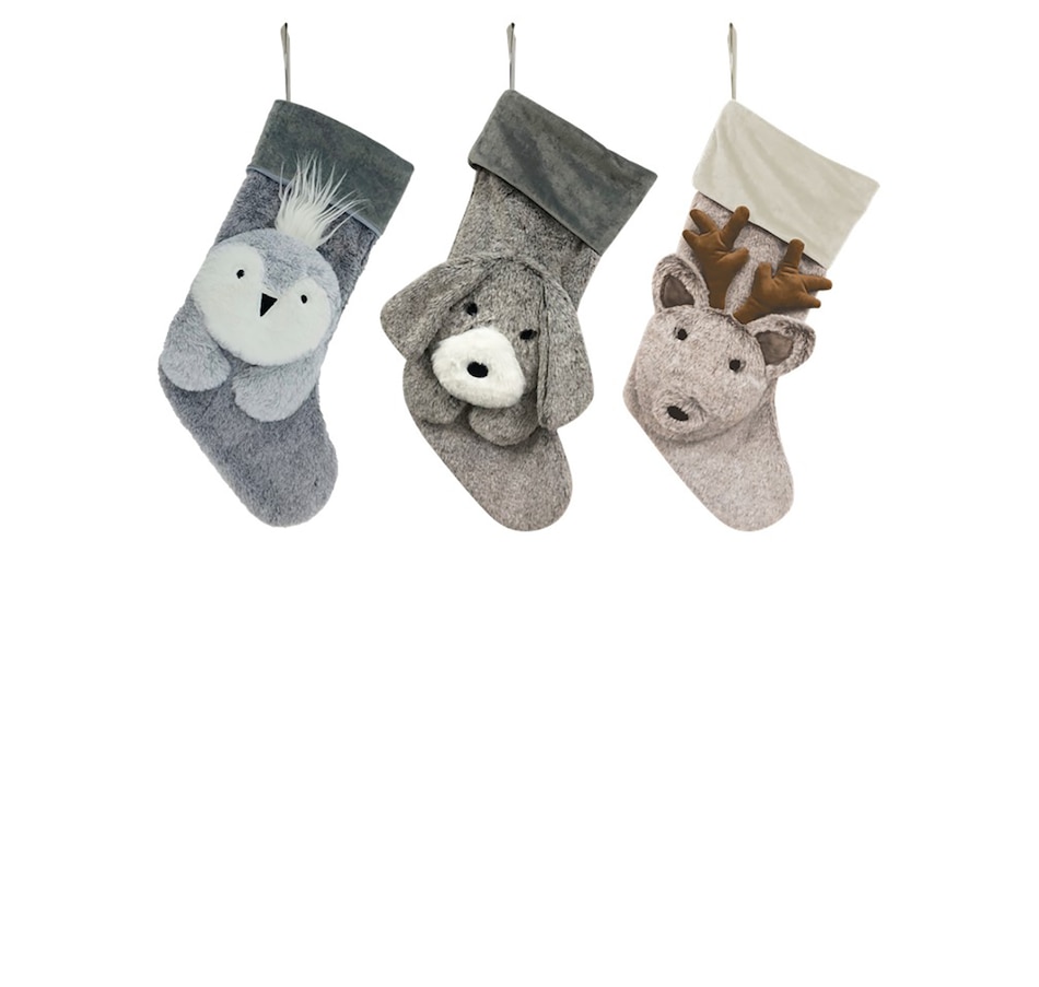 Fur Plush Animal Christmas Stockings (Set of 3)