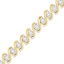 Express your feelings to her with this beautiful fashion bracelet. Designed with classiness, the piece of jewelry is composed of sterling silver. It is further plated in the yellow finish for an extra charm. This bracelet is elegantly adorned with sparkling round cut diamonds that are arranged in a miracle setting. Moreover, the yellow plated S links are enhancing its grace.