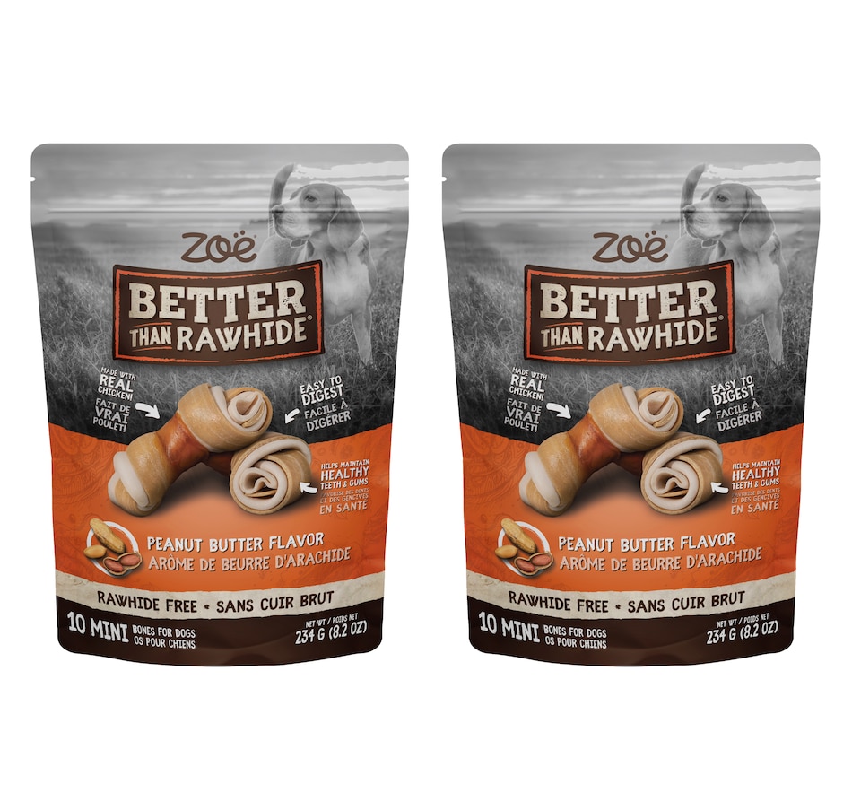 Chewing—it's what dogs do. But many pet parents worry about the potential health risks associated with chewing traditional rawhide. Satisfy their needs with a better alternative: Zoe Better than Rawhide. It's made with real chicken and easy to digest, and can help maintain healthy gums and teeth.