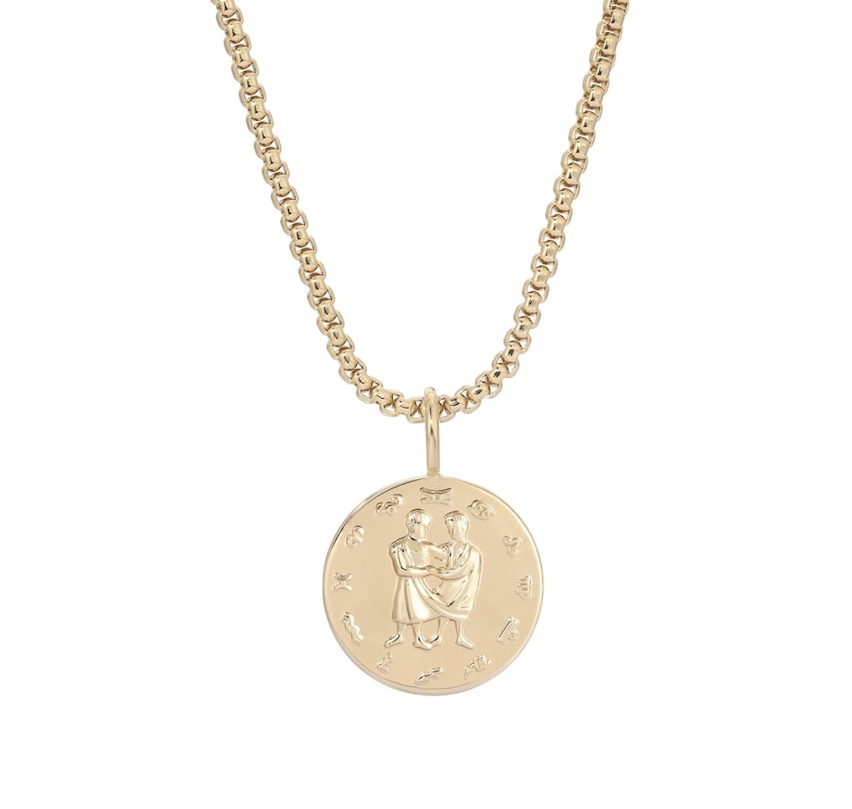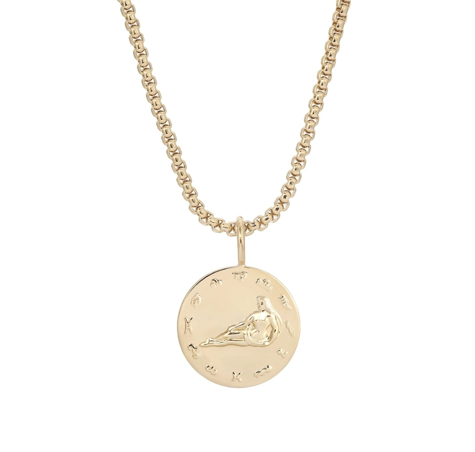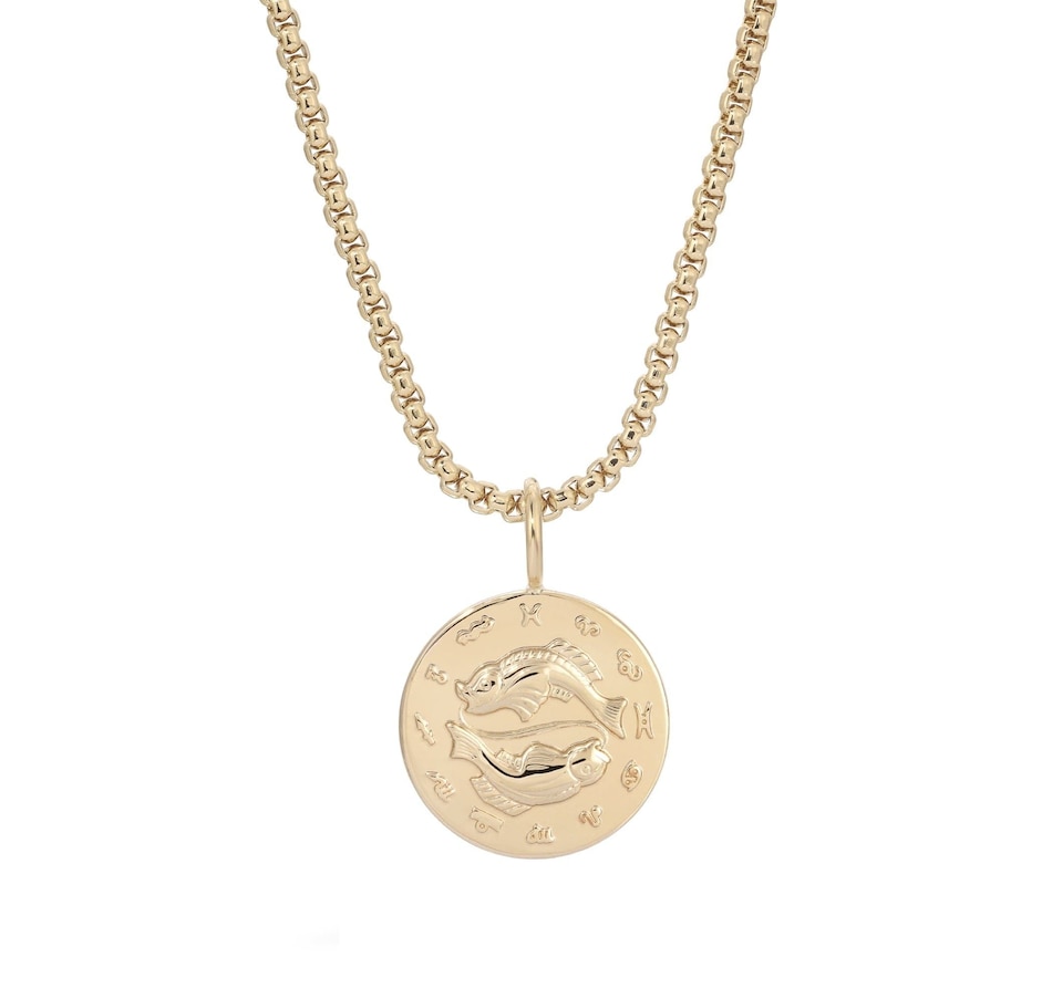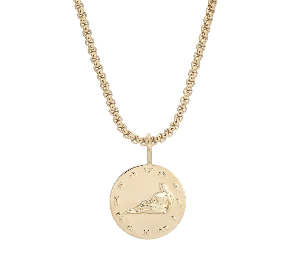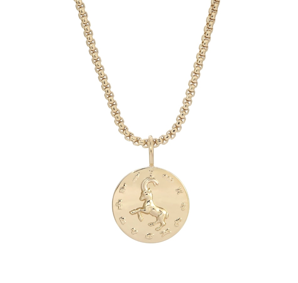 Our Zodiac Pendant necklace is made from our large multi link chain and our Zodiac Pendants.Material: Recycled BrassPlating: 14k GoldZodiac Pendant has a 1.5" diameter and is 1.5mm thickLarge multi link chain is 8mm wide.Necklace is 26" Long with a 2.40" DropPendant Necklace has a protective coating to prevent from tarnishing.All eklexic jewelry is Handcrafted in the USA from sustainable materials.