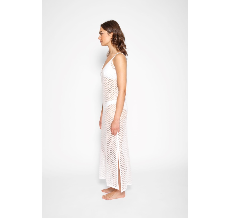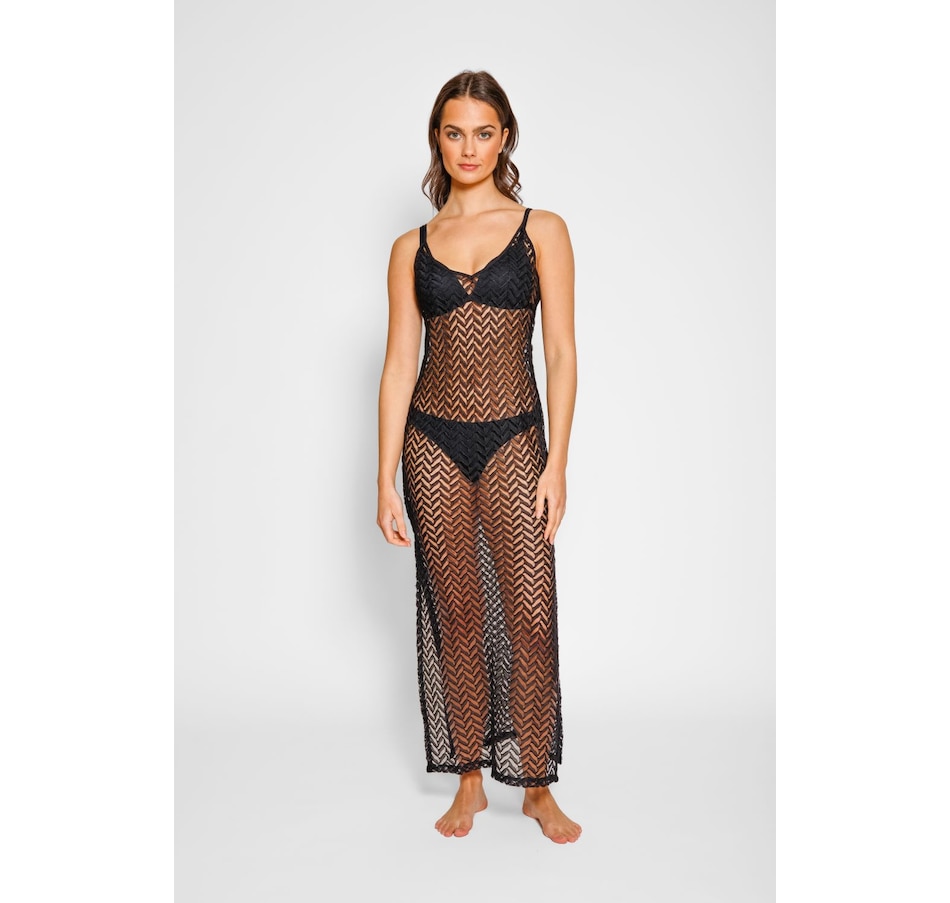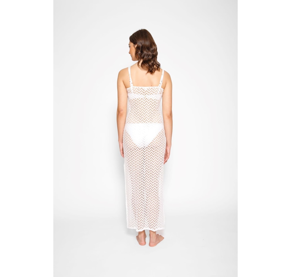 Look beach boho-chic in the Zuma Crochet Beach Cover Up Slip Dress! With its eye-catching herringbone zigzag pattern, adjustable straps and airy, sheer crochet fabric, this showstopper of a dress is the perfect piece for all your pool-side lounging, beach-side frolicking, and vacation vacay-ing! All that's missing are the shades and a drink with a little umbrella!