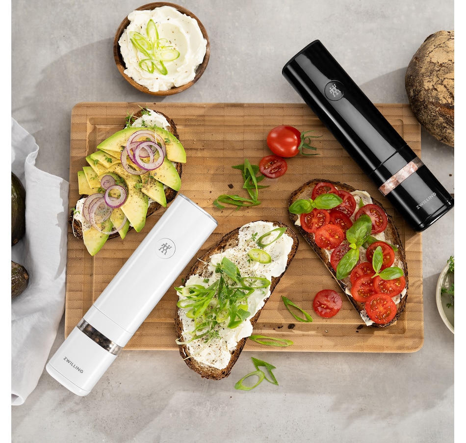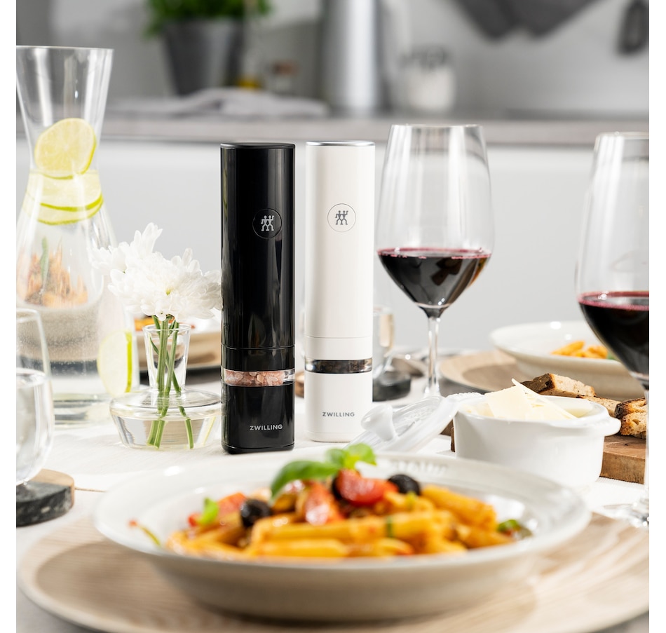 The perfect mill for a perfect meal, the Zwilling Enfinigy Spice Mill efficiently grinds salt, pepper and other spices at the touch of a button. The ceramic grinder is particularly hard, non-wearing and grinds spices to fully release their flavours. You decide how coarse or fine you want spices, by setting the grind size as you wish. Providing the necessary power is the high-performance motor, powered by a rechargeable lithium-ion battery. Thanks to its large charge it only needs to be plugged in again after frequent grinding, and because there are no batteries to change, you save money and protect the environment.