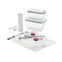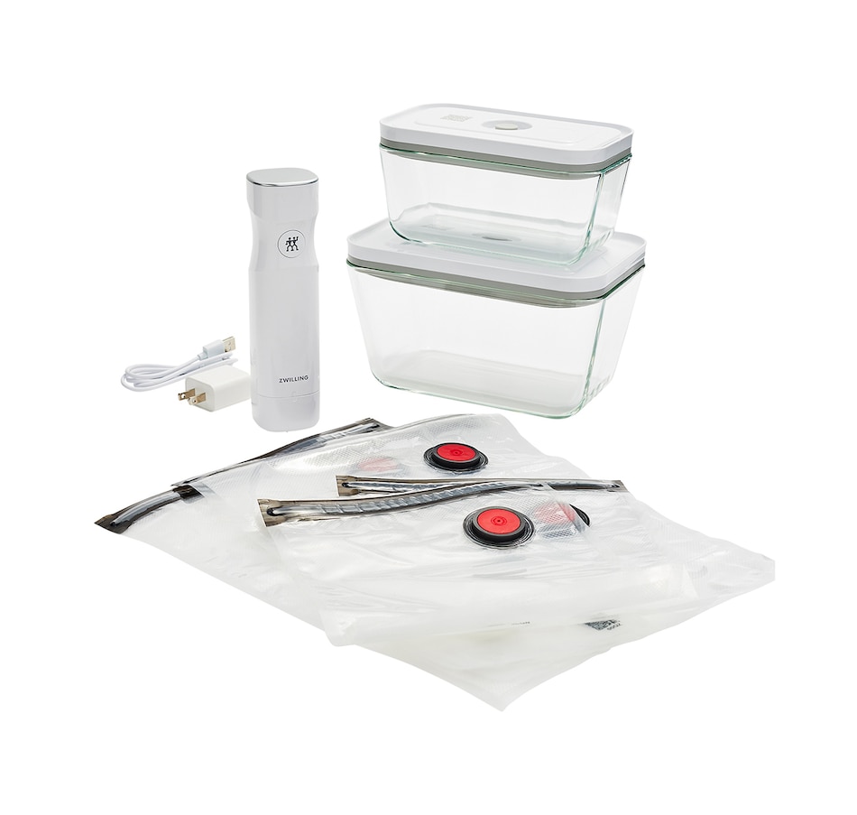 Say hello to fresh food and goodbye to food waste. Eat healthier, save time, and store your food with long-lasting freshness with the new vacuum storage system: Fresh & Save. The exclusive technology helps preserve flavours and nutrients, helps prevent freezer burn, and can keeps food fresh up to five times longer than non vacuum storage methods. Blending the power of a countertop vacuum sealer with the versatility of a handheld device, the cordless vacuum pump is fast, quiet and easy to use, and thanks to its compact design, it will also fit into any kitchen. With the Zwilling double-sealing effect (most others only seal one surface), the containers are shut tight for super-fresh food. What’s more, the downloadable Culinary World app will track when you store food and when it will spoil, helping you to reduce food waste and save money.