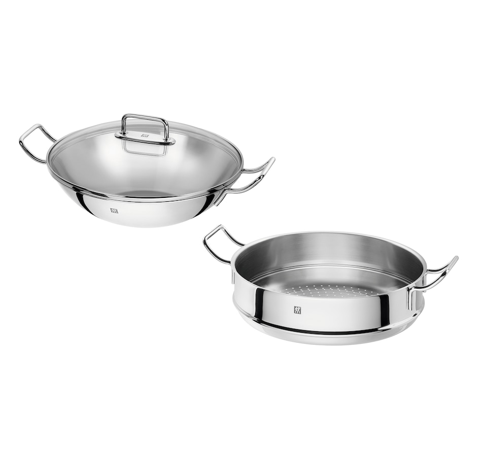 The versatile Zwilling Plus Wok with Steamer three-piece set is ideal for preparing delicious stir-fries or perfectly steamed fish, vegetables and healthy meals. You can also use the set to steam food on top and cook on bottom at the same time to save time and energy.