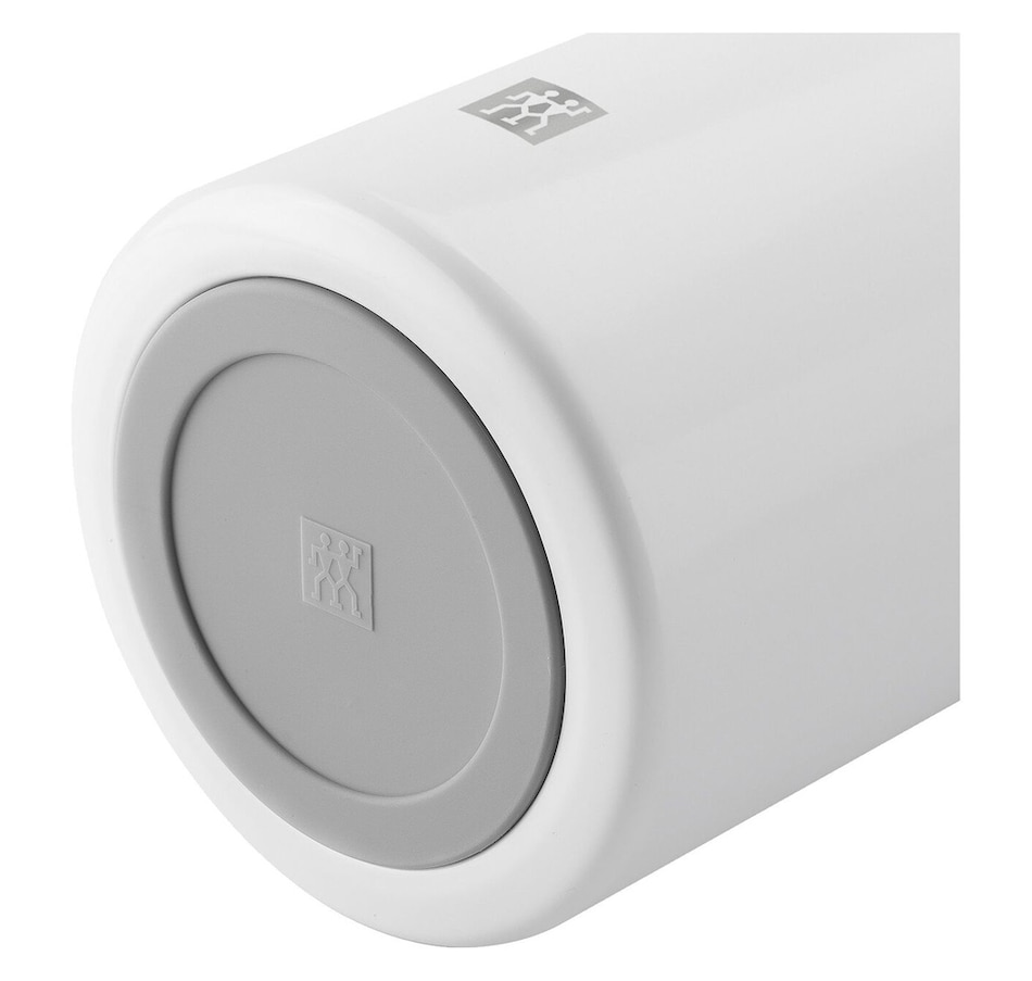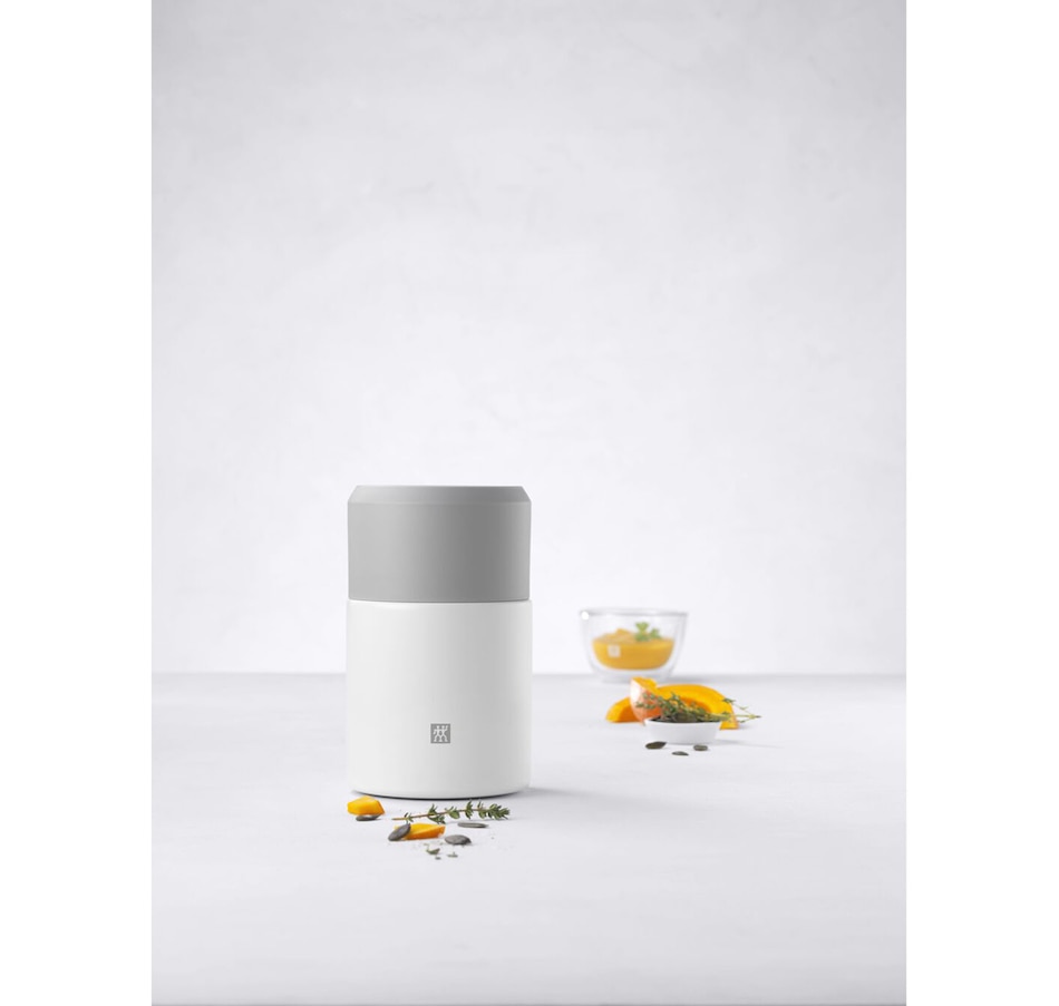 Enjoy your next hot soup in the park. Or wherever you want. The Zwilling Thermo Food Jar lets you take hot and cold food anywhere. The Thermo jar in white is vacuum insulated with double-walled stainless steel. This keeps the contents hot for up to 8 hours or cold for up to eleven hours. The completely leak-proof food jar lets you to take up 700 ml with you without any spills or drips. The practical cap conceals an integrated spoon and the lid can also be used as a bowl. The Thermo food jar is made from high-quality stainless steel and plastic. This means that it's especially robust and dishwasher-safe. The non-slip base is coated with plastic to ensure good stability. It also means that setting down the lunch box is particularly gentle and quiet. The food jar in white is pure in design and absolutely timeless. The modern design forgoes superfluous decorations to focus on premium quality and uncompromising functionality.
