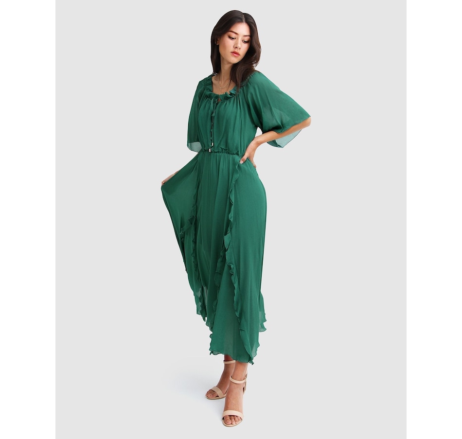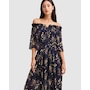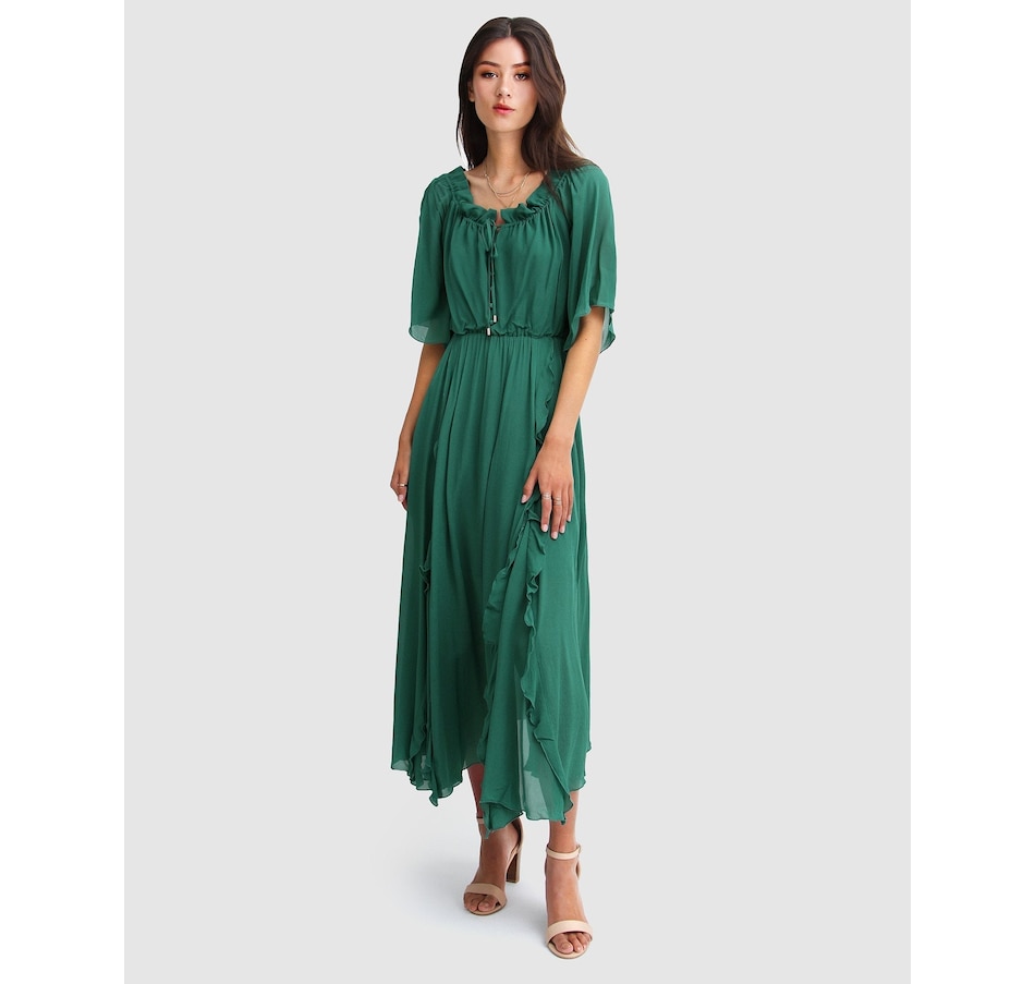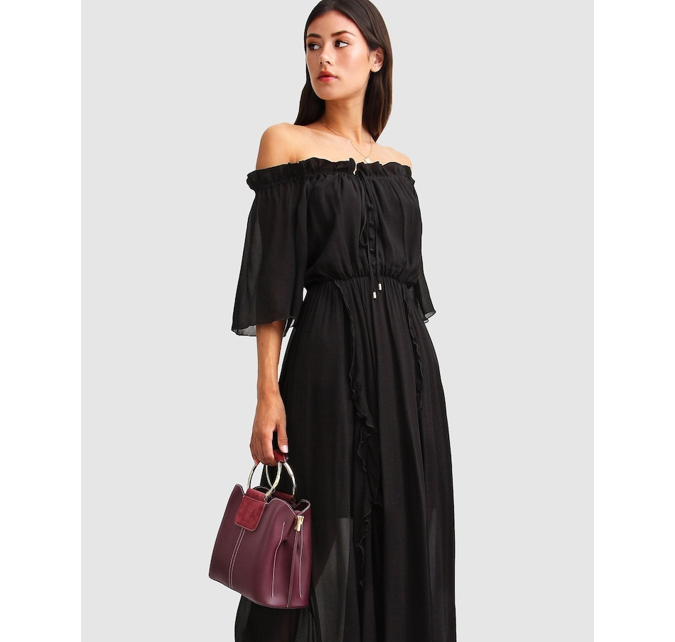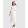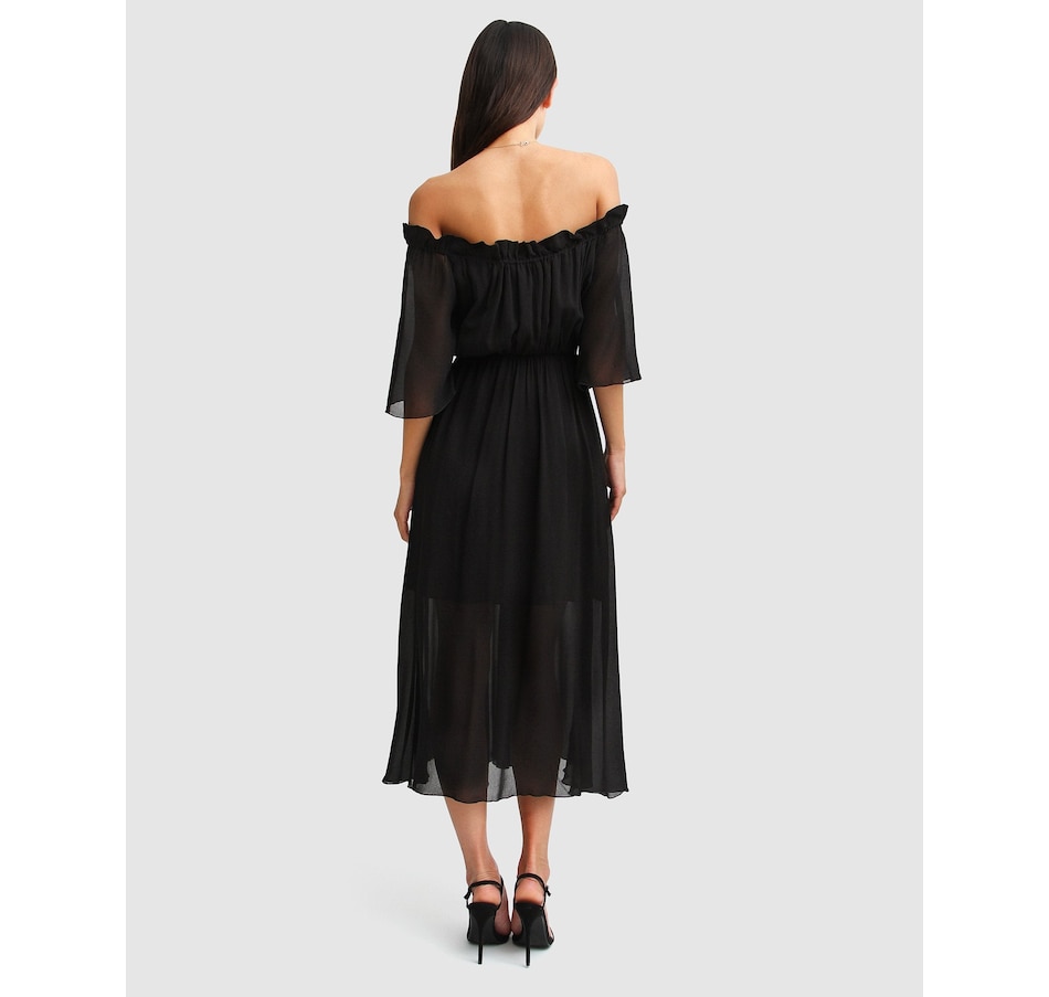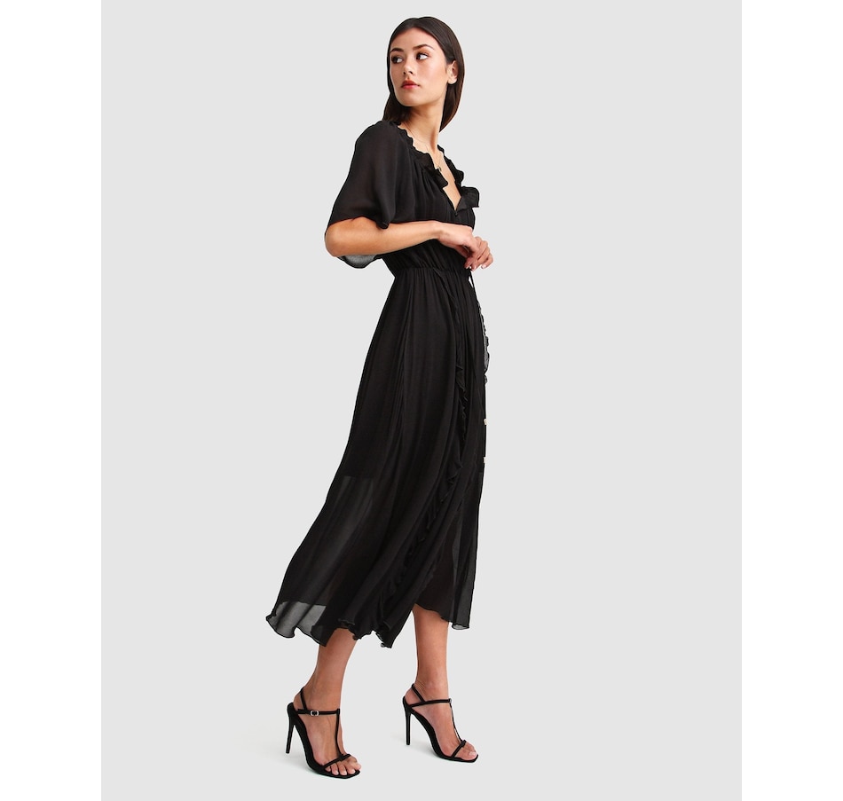 The Amour Amour Ruffled Midi Dress is an ultra boho dress, wear it on or off the shoulder. Pair it with sandals for the beach, or glam it up with heels and statement earrings for the evening.