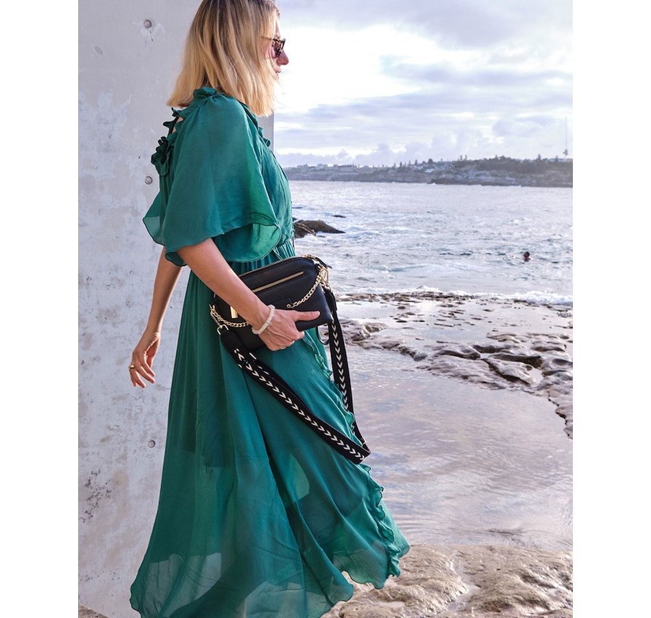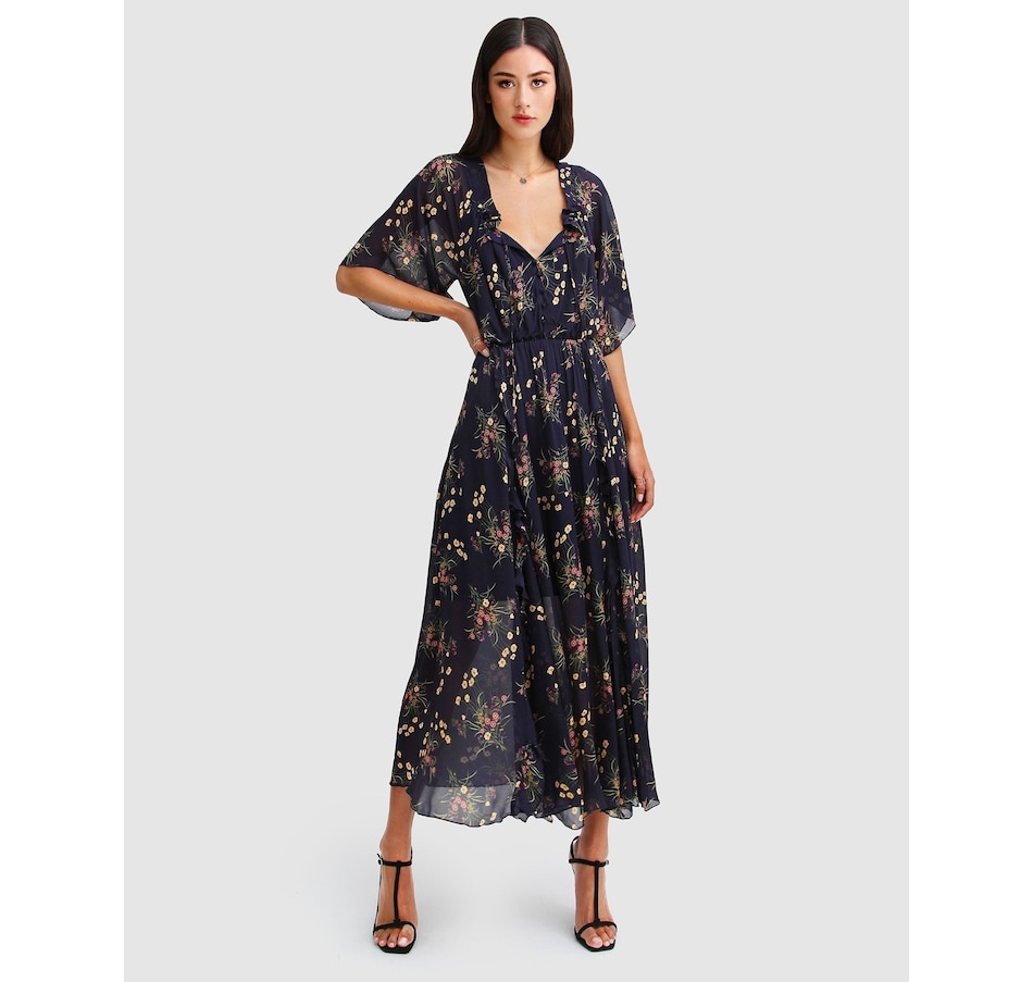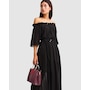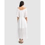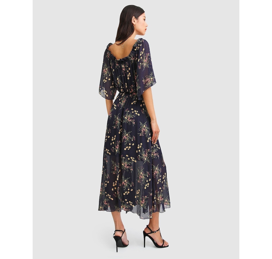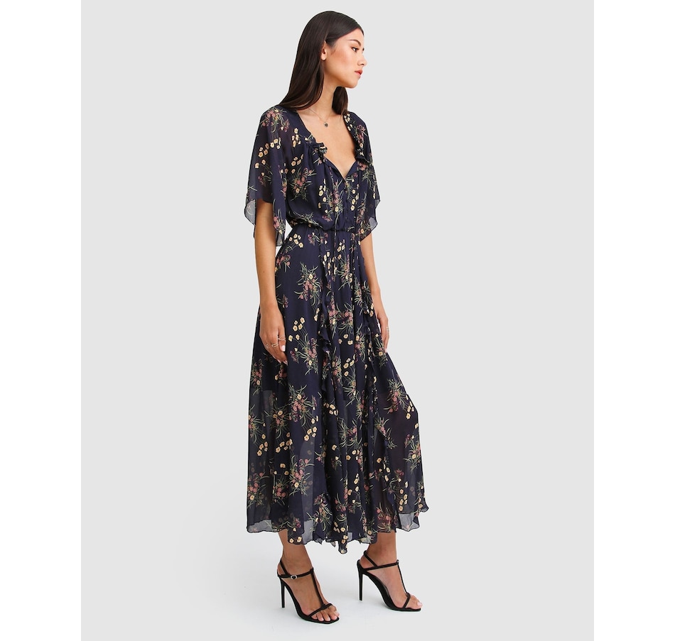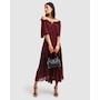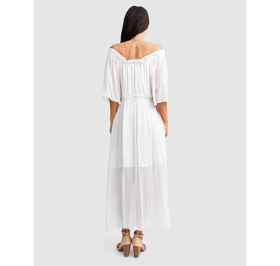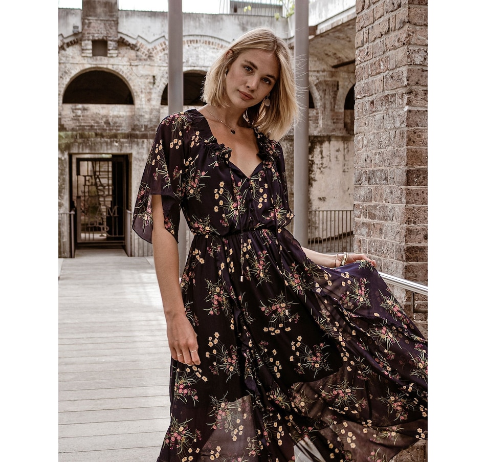 The Amour Amour Ruffled Midi Dress is an ultra boho dress, wear it on or off the shoulder. Pair it with sandals for the beach, or glam it up with heels and statement earrings for the evening.