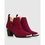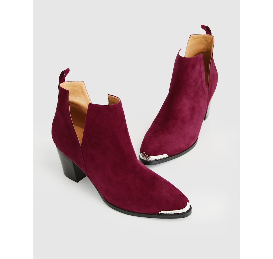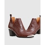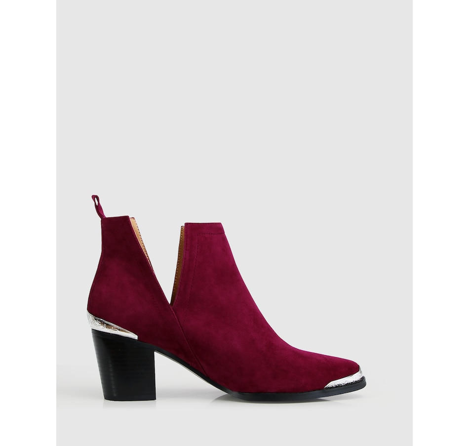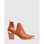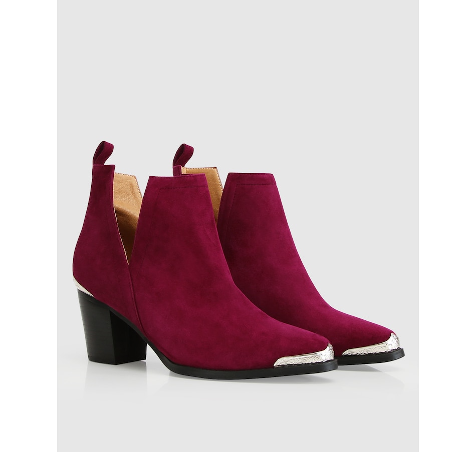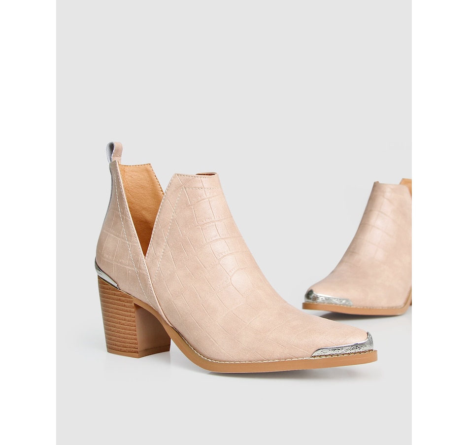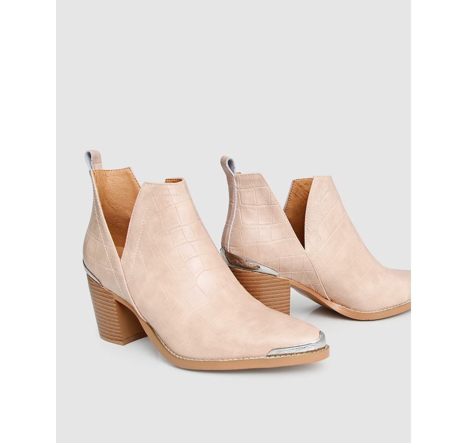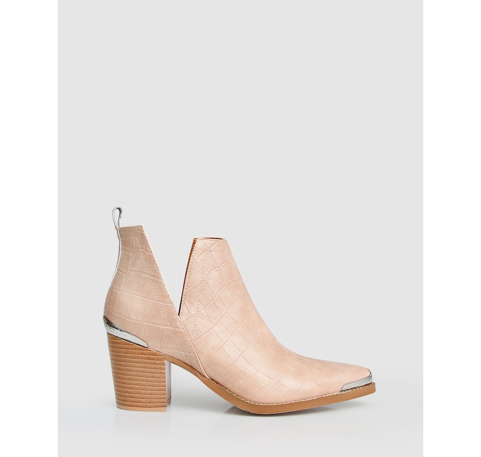 An etched metal capped heel and toe adds a dose of Western styling to the Austin Croc Embossed Ankle Boot. Grounded by a 7cm block heel, the cut-out silhouette and sleek croc embossed leather modernises the classic western features and creates a stylish addition to any outfit.