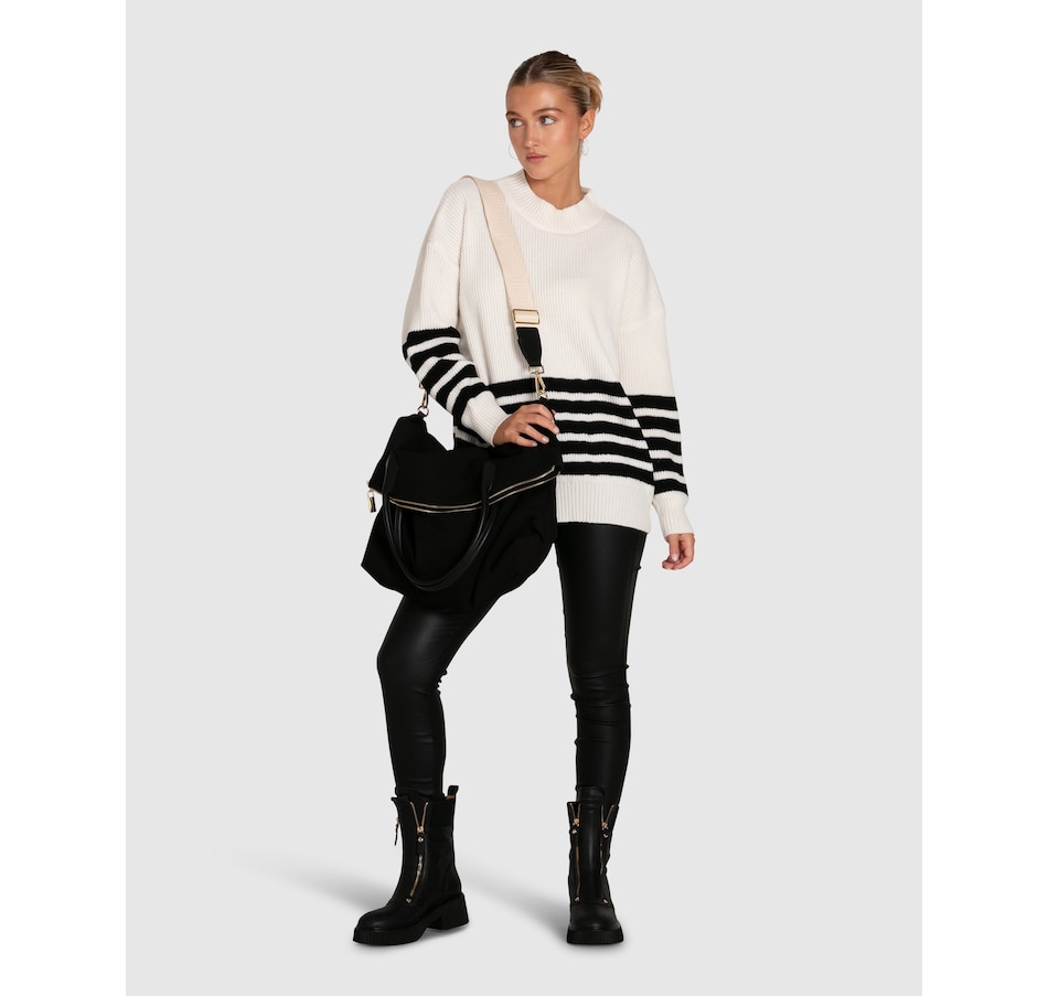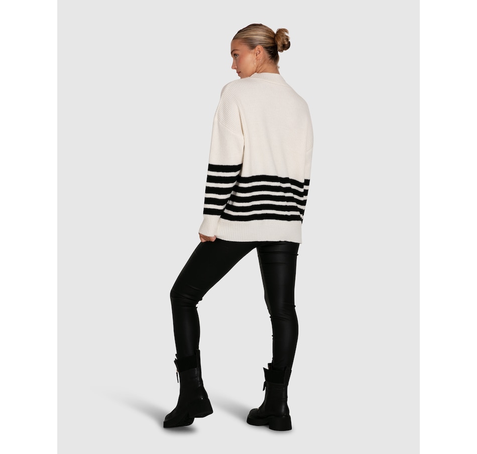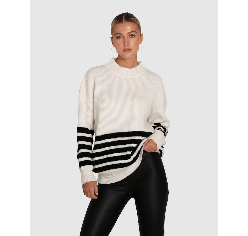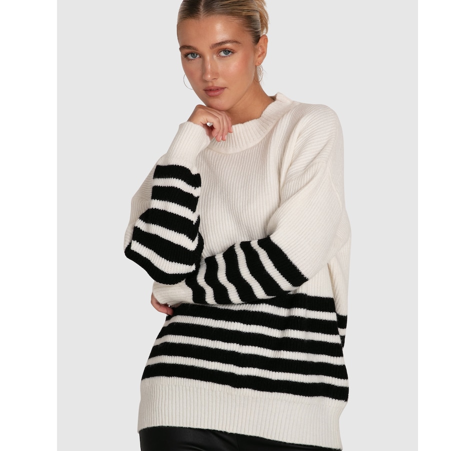 Vivid black stripes define the Everything I Do Oversize Knit, featuring a dropped shoulder and easy to wear wide crew neck for classic laid back styling.