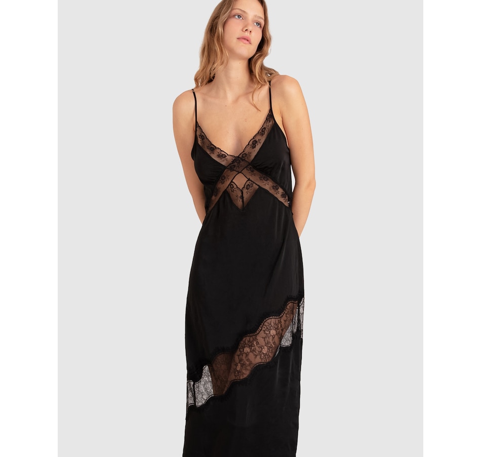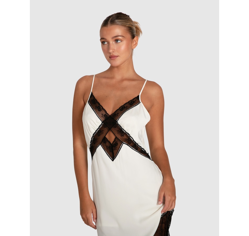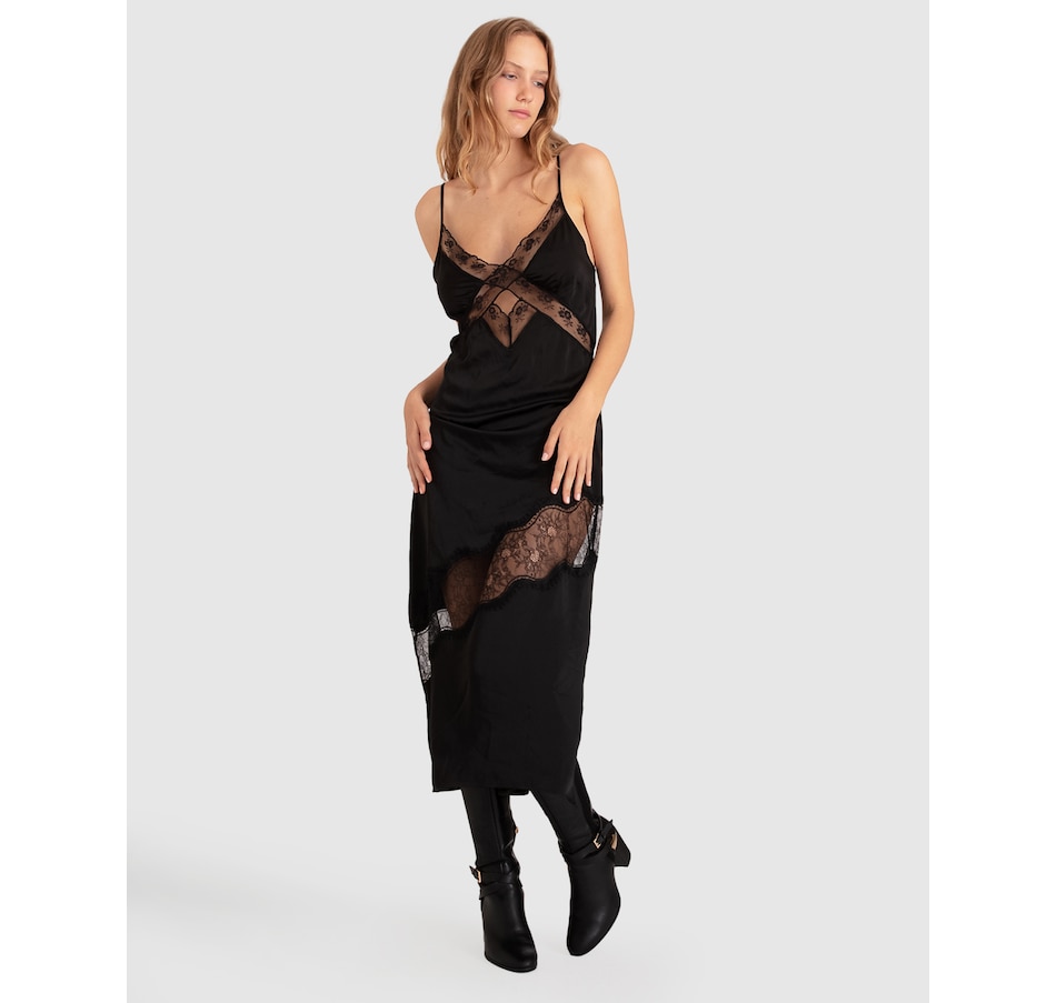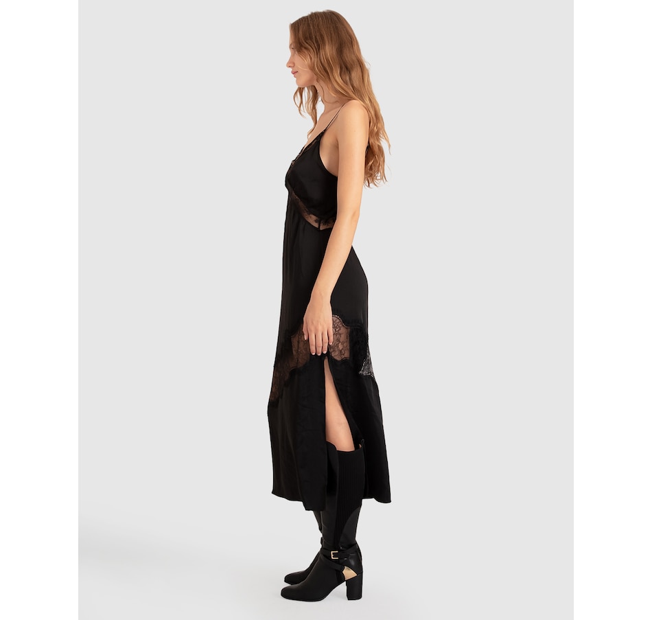 The Heavenly Bodies Lace Slip Dress is a nod to vintage glam with a contemporary twist. The soft satin and side split ensure all-day comfort, while its versatility allows for effortless styling - pair it with heels for a night out or embrace casual chic with sneakers and a leather jacket.