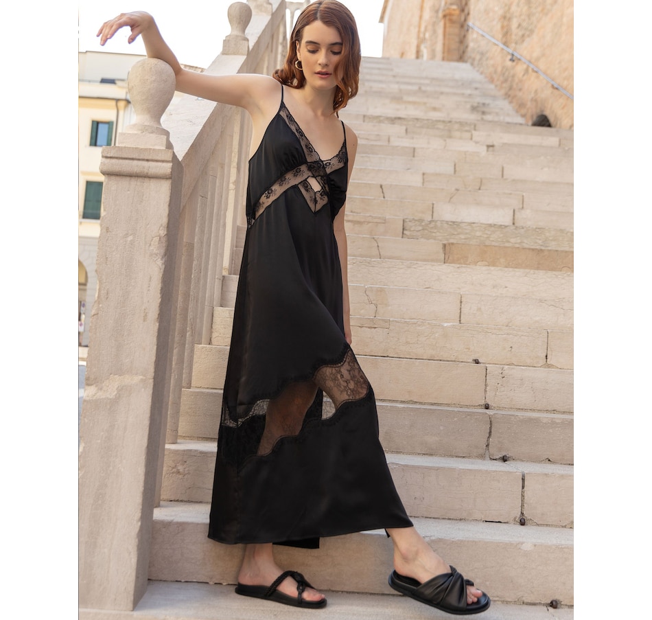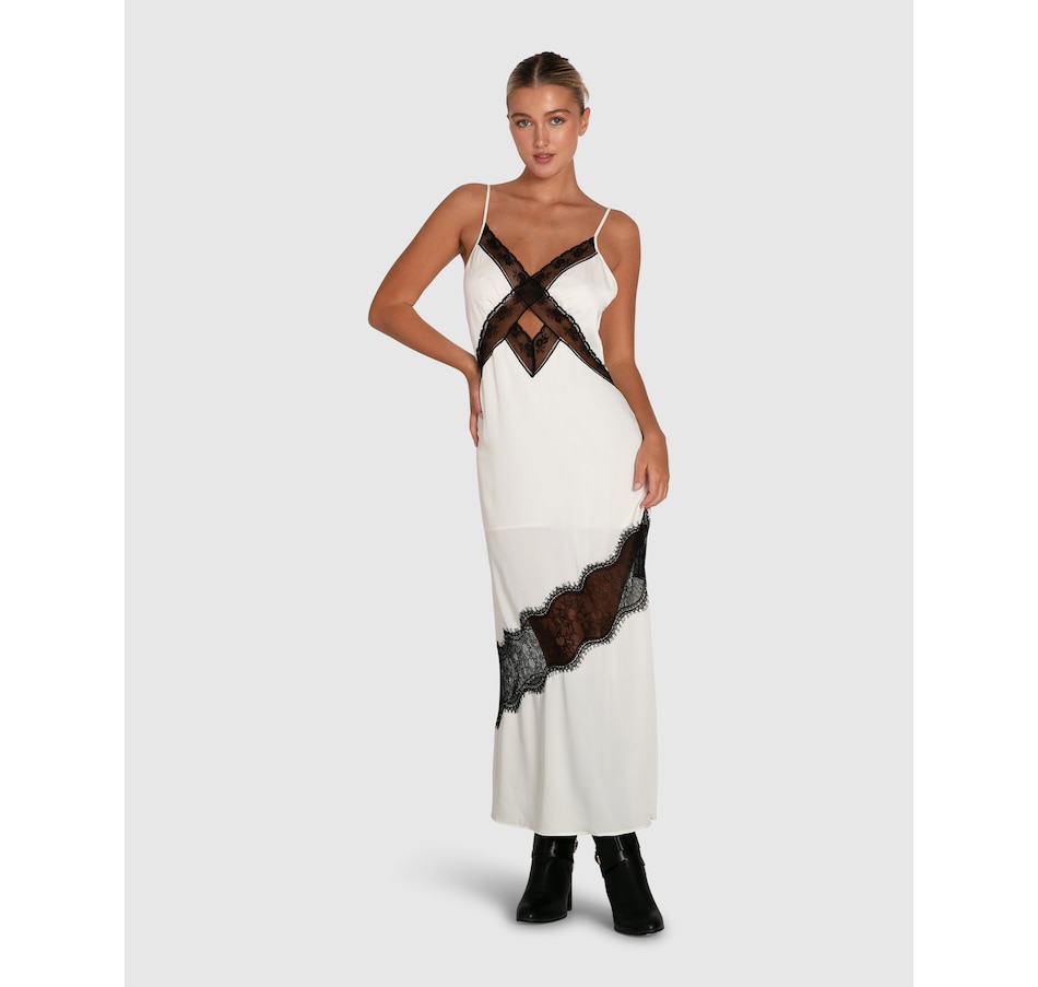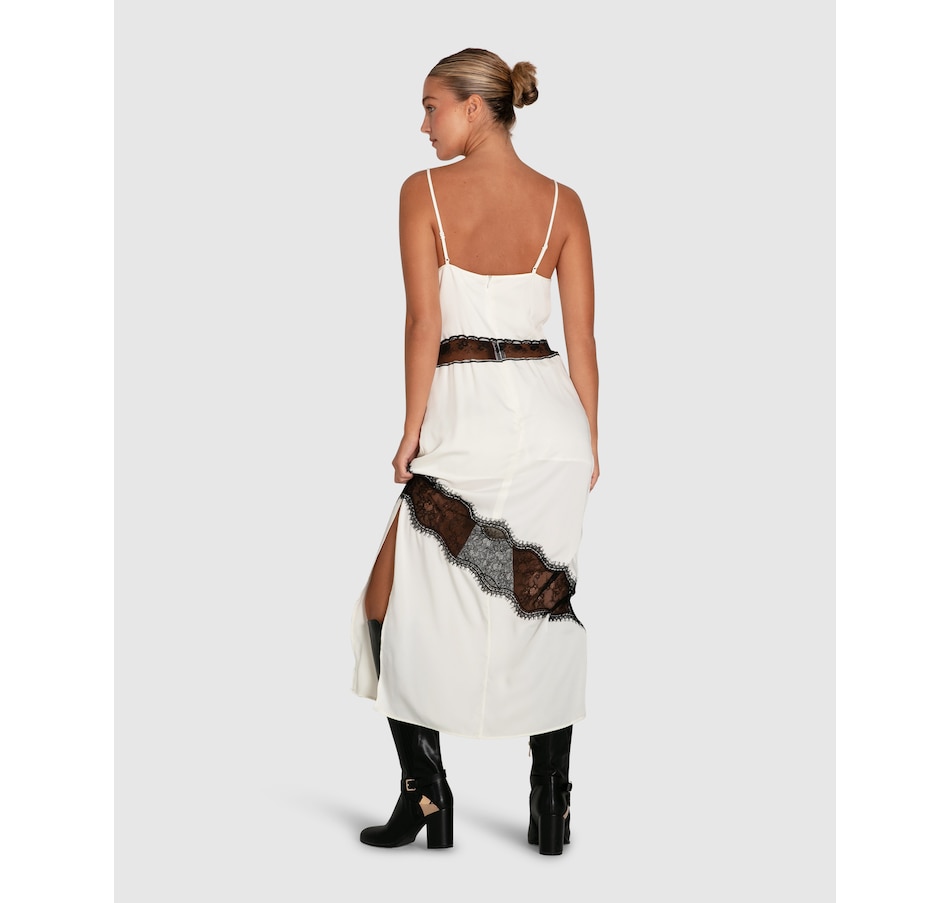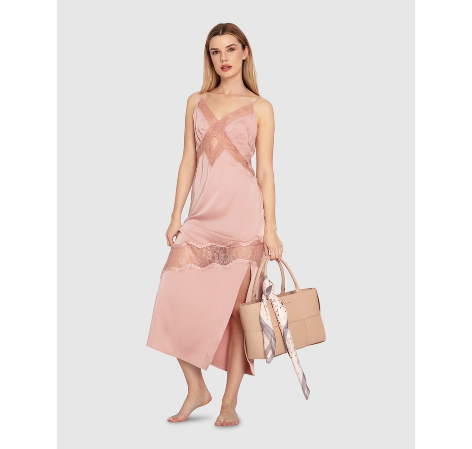 The Heavenly Bodies Lace Slip Dress is a nod to vintage glam with a contemporary twist. The soft satin and side split ensure all-day comfort, while its versatility allows for effortless styling - pair it with heels for a night out or embrace casual chic with sneakers and a leather jacket.