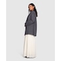 - Double-breasted button closure