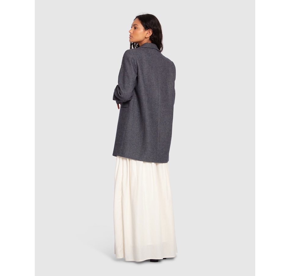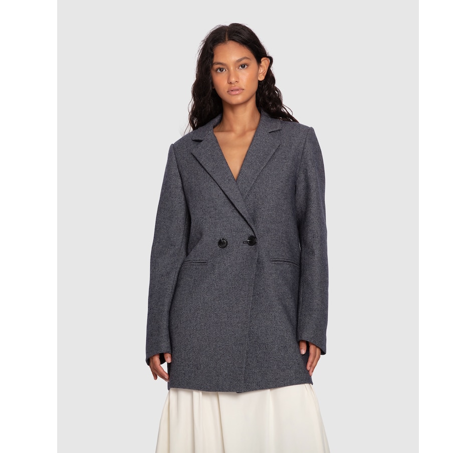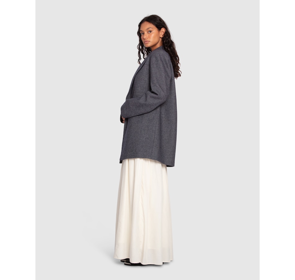 Draped beautifully in a salt & pepper texture, the Kensington Oversized Coat is a great transeasonal piece cut in a lightweight wool blend. Designed for an oversized fit. Take your usual size for the intended look or size down for a neater look.