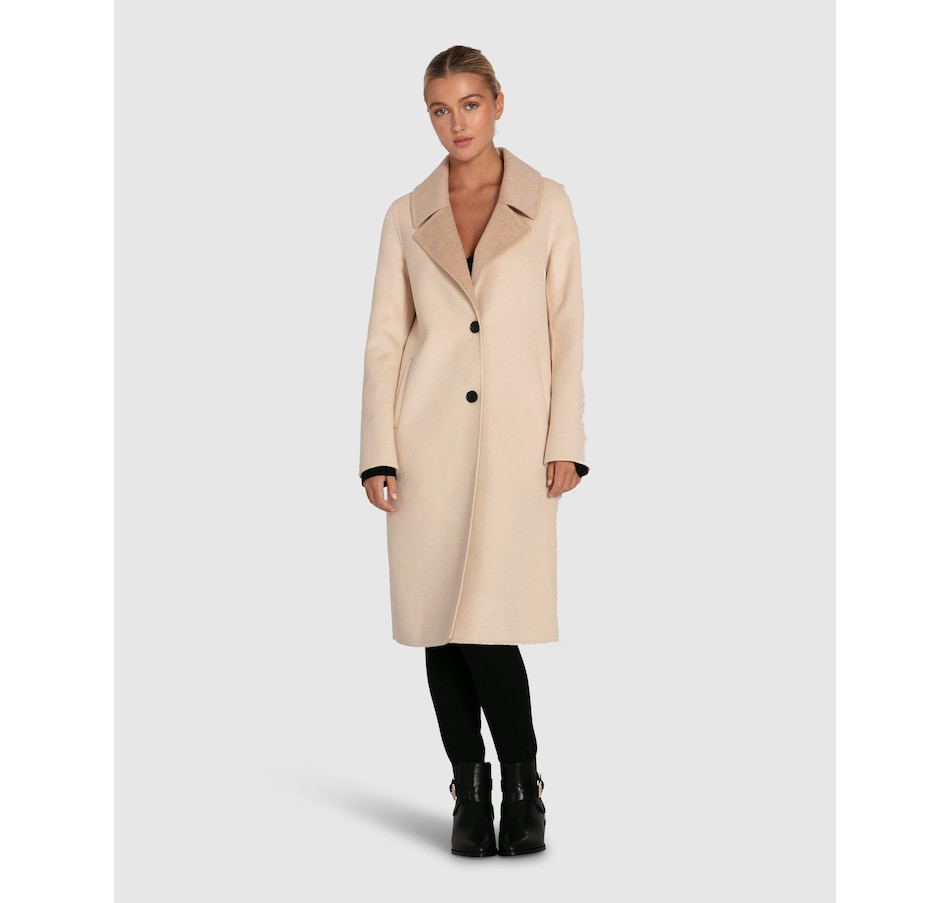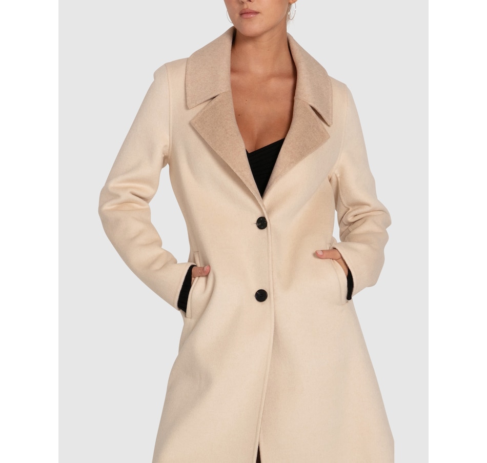 Elegantly streamlined, the Lexington Two-Tone Wool Blend Coat features a double-faced design with a beautiful contrast collar. This timeless look and high quality construction will stay with you for seasons to come.