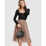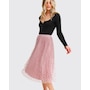 Don' t know what to wear? We have the perfect answer! Mixed Feeling Reversible Skirt features velour pleats on one side and flock polka dots on tulle inside. Turn it inside out anytime! It will become your go-to style on any occasion.