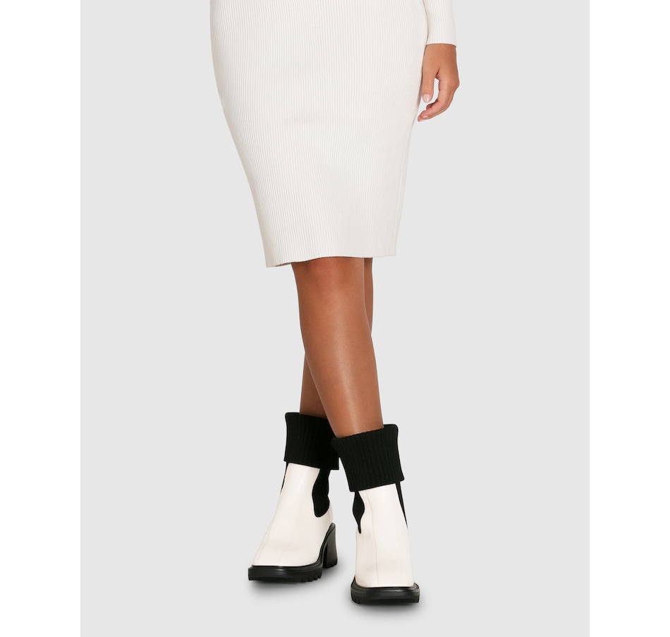 The Perfect Illusion Knit Boot is a cosy update of the classic Chelsea boot with an extra chunky rib sock-like panel that can be worn up or folded down to ensure you can stay comfy no matter what outfit you're wearing.