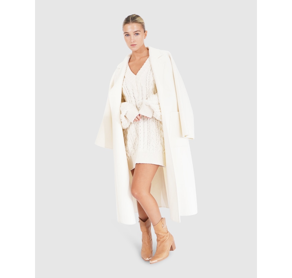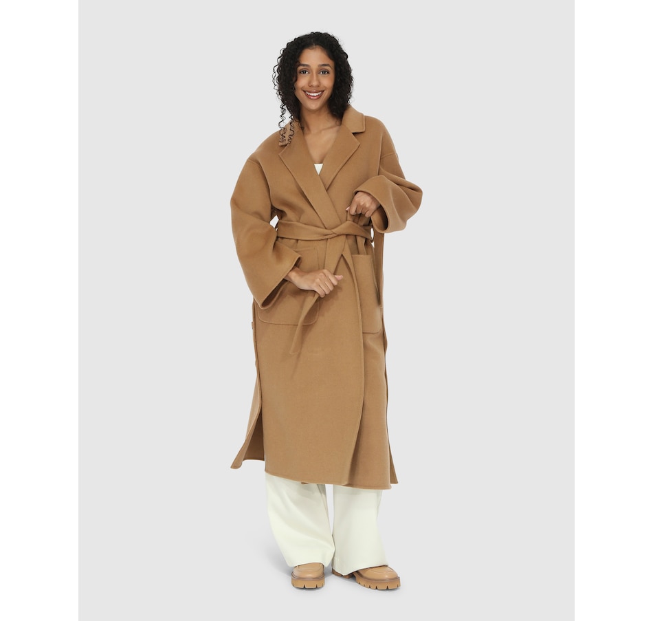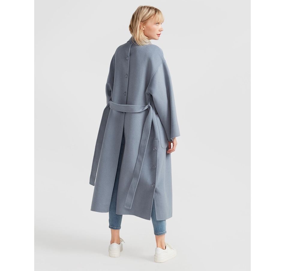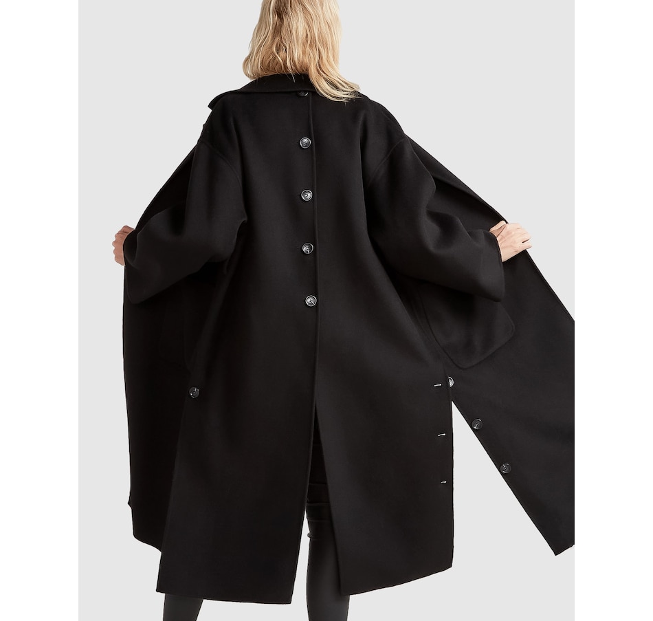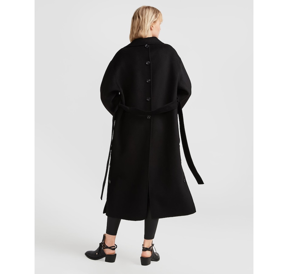 All enveloping and made in our signature double-brushed wool, the Wide Awake Split Hem Overcoat is the ultimate statement-maker. With button details at side and back seam, elevating the classic wrap front - it' s both modern and elegant. Designed for an oversized fit. Take your usual size for the intended look or size down for a neater look.