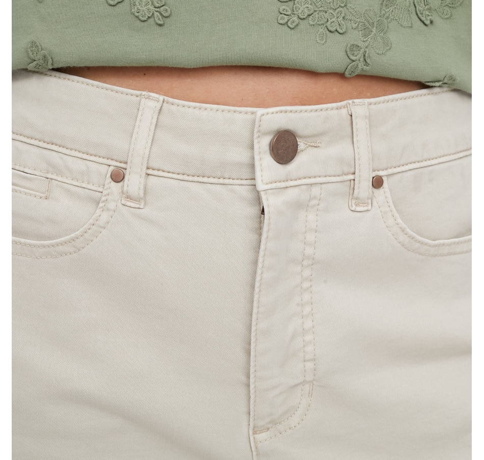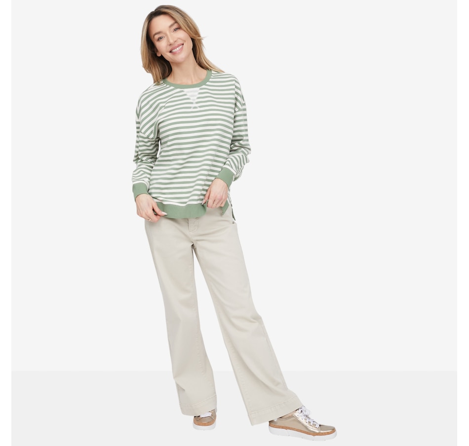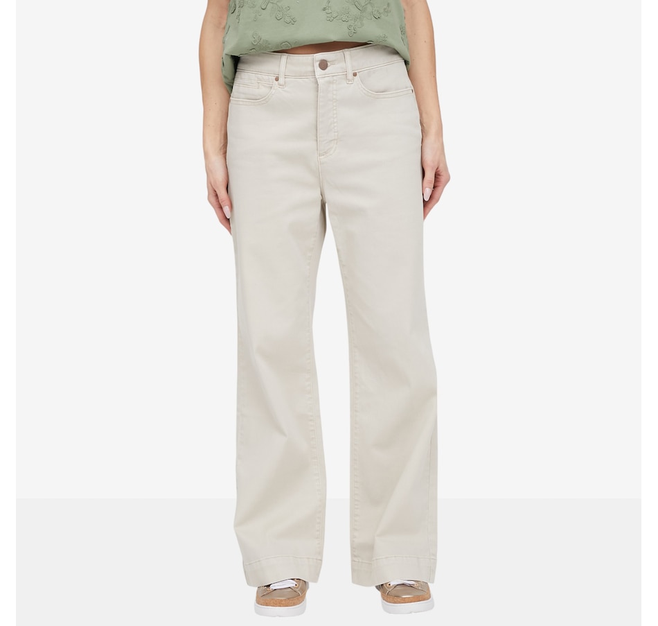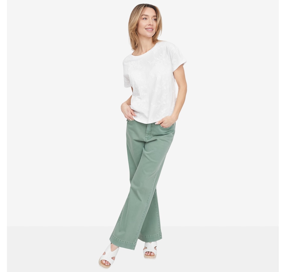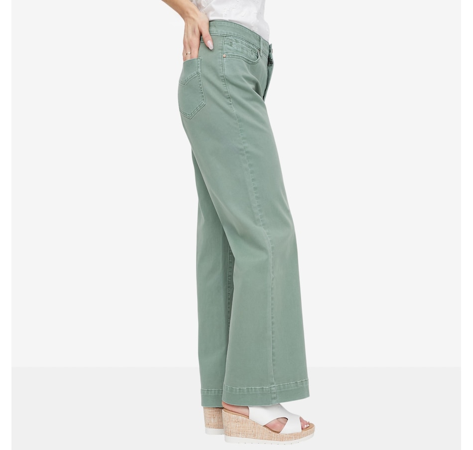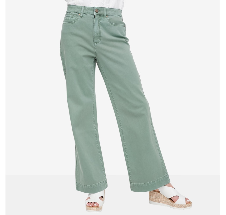 Crafted from soft stretch twill, this pant delivers a structured, tailored look without sacrificing all‑day ease. The flattering wide‑leg silhouette moves beautifully with you, while the fly‑front design with button closure and five functional pockets adds timeless appeal and everyday practicality. Finished with a 30" inseam for full‑length coverage, this versatile style is designed to flatter from every angle, perfect for dressing up with a blouse or keeping it relaxed with a cozy knit.