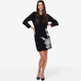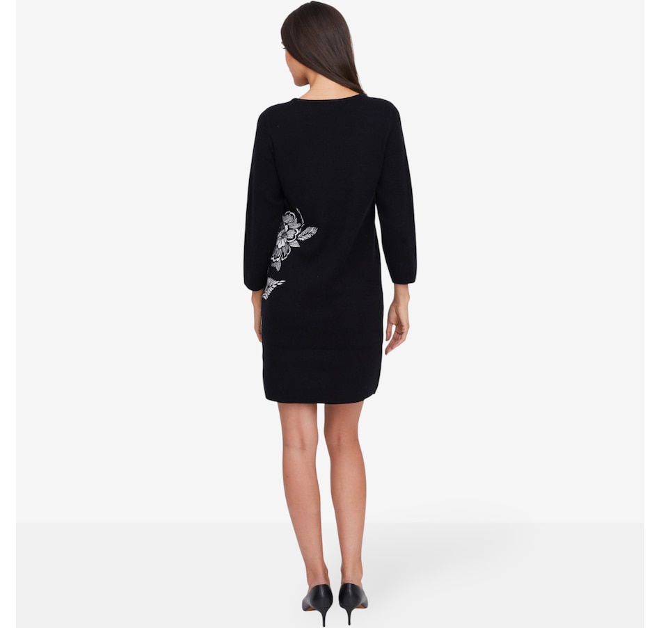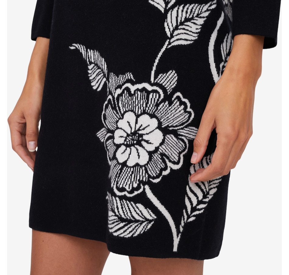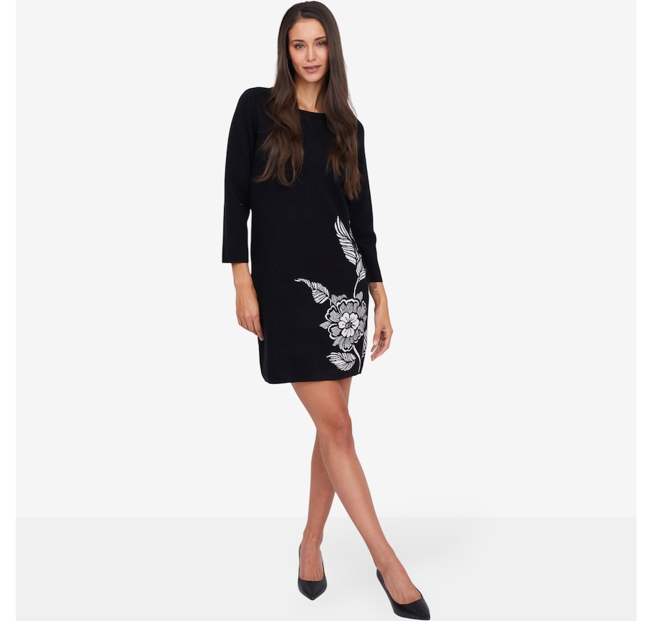 • Boat neckline, elbow-length sleeves, floral side hit detail, double knit jacquard