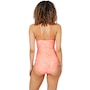 • V-neck, built-in cups, built-in mesh tummy panel, adjustable straps, printed stretch nylon