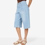 Crafted from lightweight stretch denim, this capri offers a relaxed fit with a girlfriend-style waist and flowy palazzo leg.