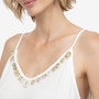 Stand out in this breezy maxi dress, featuring an airy white gauze that allows for effortless movement. Delicate seashell detailing subtly embellishes the poised v-neckline and adding a touch of coastal charm. It finishes with a mesh crochet accent at the back, adding a hint of romantic allure.