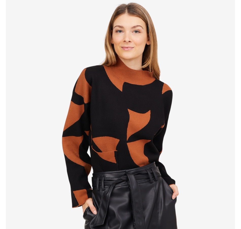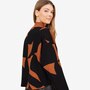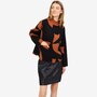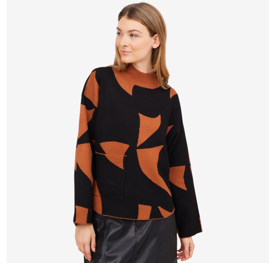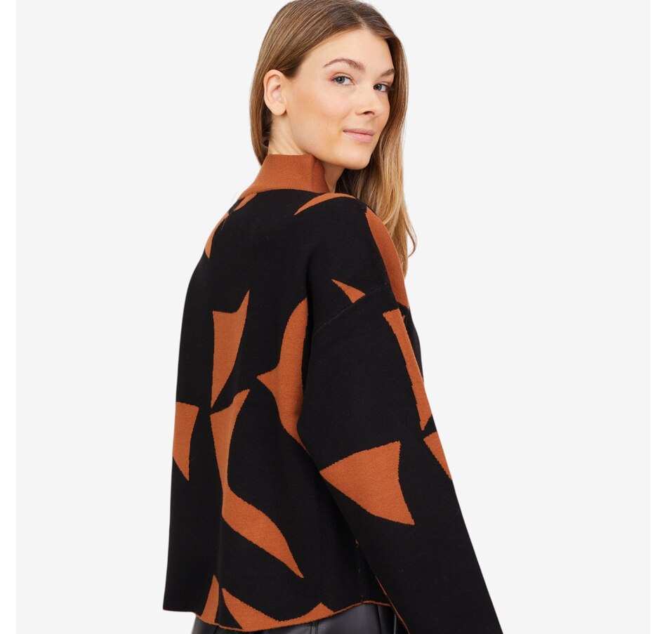 Make a statement in this oversized sweater, featuring a striking abstract print for a bold, modern edge. The mock neckline and long sleeves provide cozy coverage, while the front pocket adds a practical touch. A relaxed, oversized fit completes the look with laid-back sophistication.