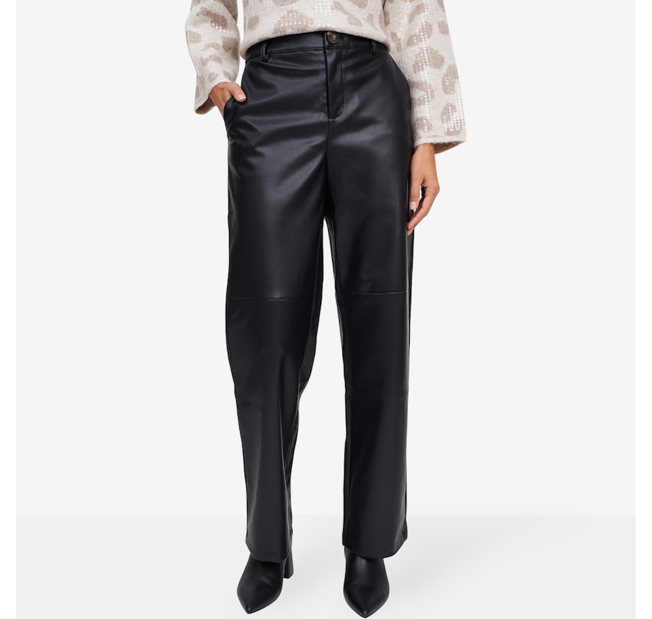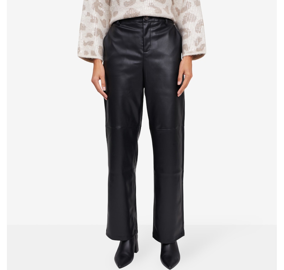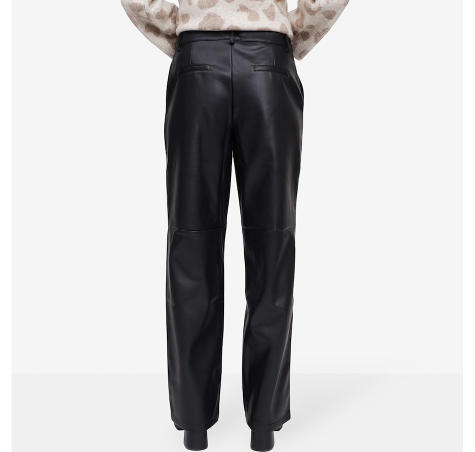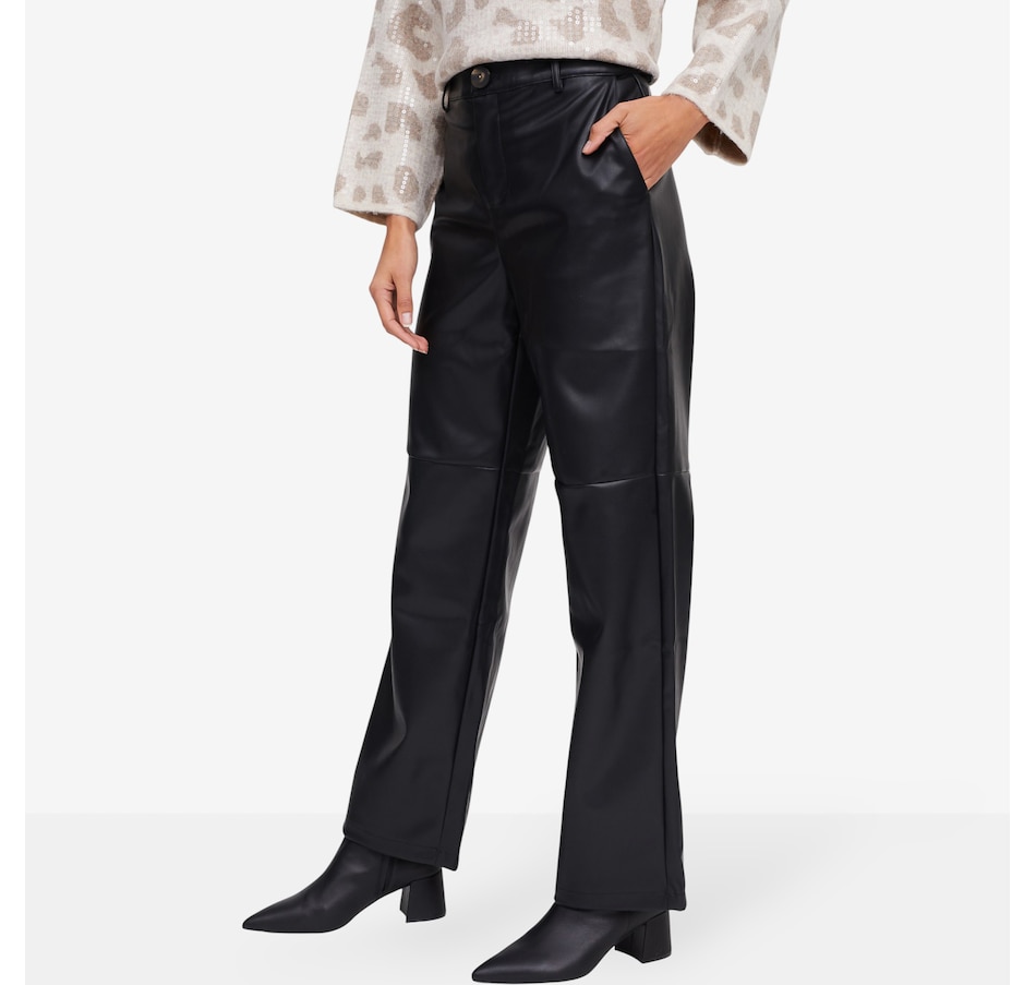 Achieve a sleek, contemporary look with the claudia ev straight-leg trouser, designed for confidence and versatility. Crafted from smooth polyurethane fabric, these trousers feature a flattering high-rise waist and a secure zip fly front for easy wear. The cut accents at the knees add flexibility and a bold, fashion-forward edge. Perfect for pairing with chic blouses or casual knits, these trousers bring runway-inspired sophistication to your everyday wardrobe.