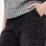 The claudia ev super straight jean brings bold sophistication to your wardrobe with rhinestone embellishments for an eye-catching finish. Crafted from textured denim with added stretch, these jeans offer flexibility and comfort without sacrificing style. The high-rise cut and relaxed girlfriend fit create a flattering silhouette, while the super straight leg delivers a sleek, modern look. Complete with button and zipper closure, five functional pockets, and shimmering details, these jeans pair perfectly with a silky blouse for evening glam or a cozy knit for chic daytime wear.