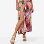Slip into effortless style with this flowy wrap pant, ideal over your swimsuit or styled on their own for casual outings. The lightweight, breathable challis fabric keeps you cool, while a bold pattern adds statement style. A flat front creates a smooth silhouette, and back elastic offers stretch and movement for all-day comfort.